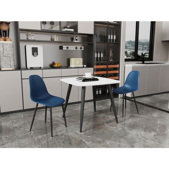 NEXO Square Dining Table with 2 Curve Plastic Chairs - White with Blue