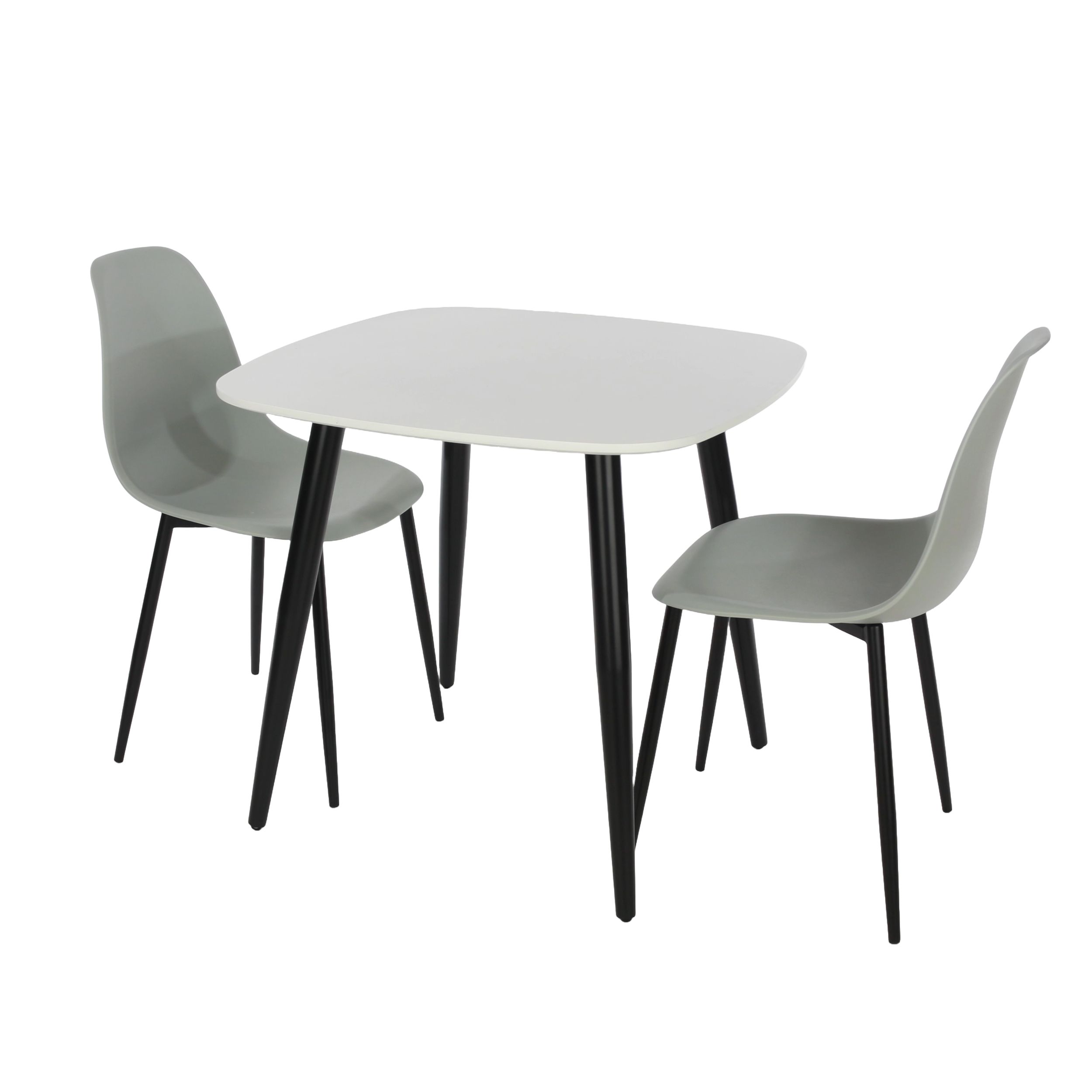NEXO Square Dining Table with 2 Curve Plastic Chairs - White with Grey
