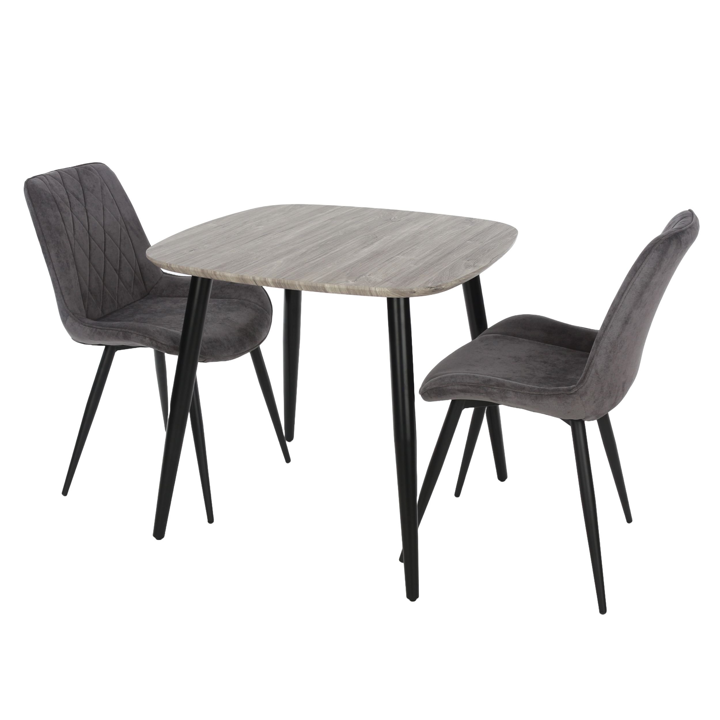 NEXO Square Dining Table with 2 Diamond Stitch Fabric Chairs - Grey Oak with Grey