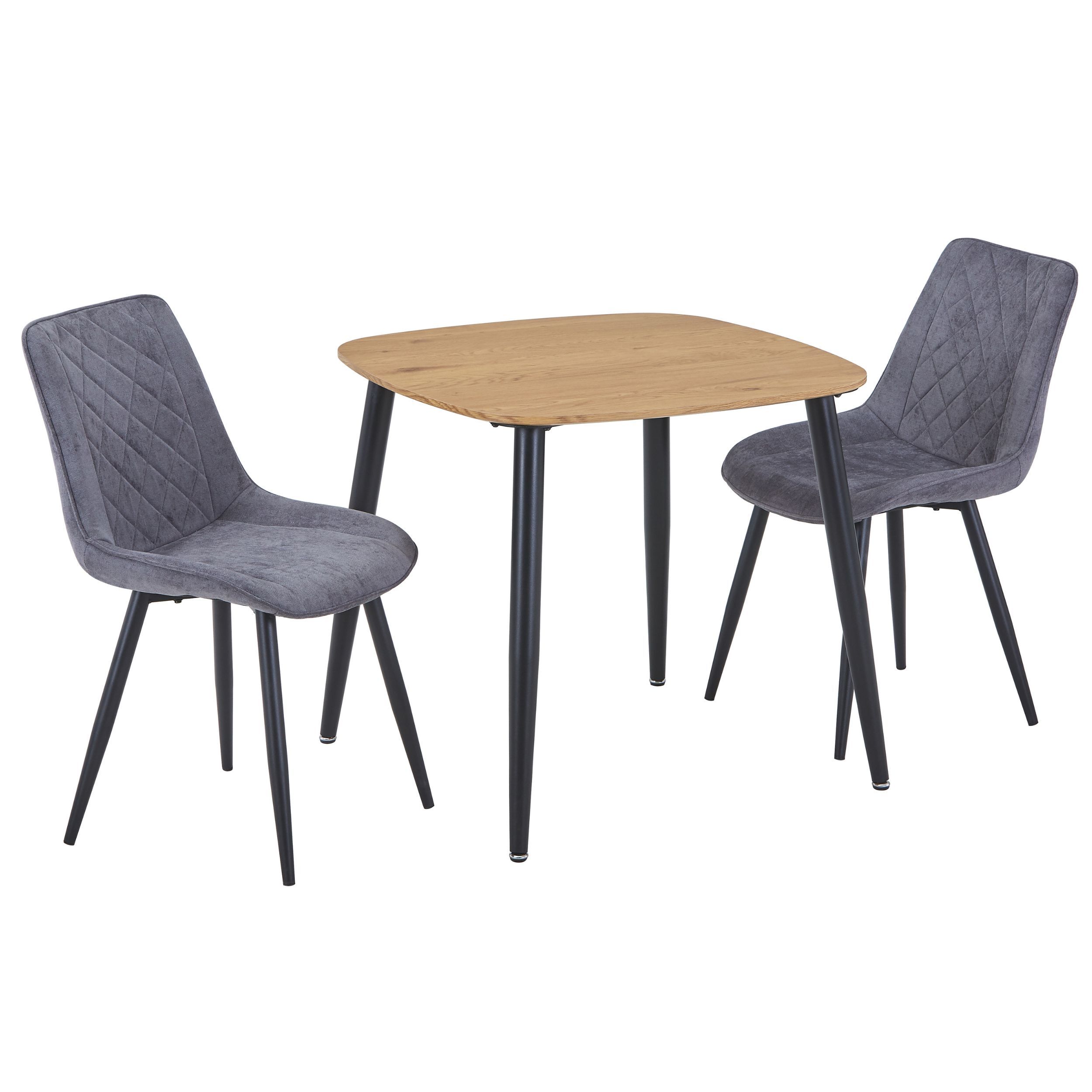 NEXO Square Dining Table with 2 Diamond Stitch Fabric Chairs - Light Oak with Grey