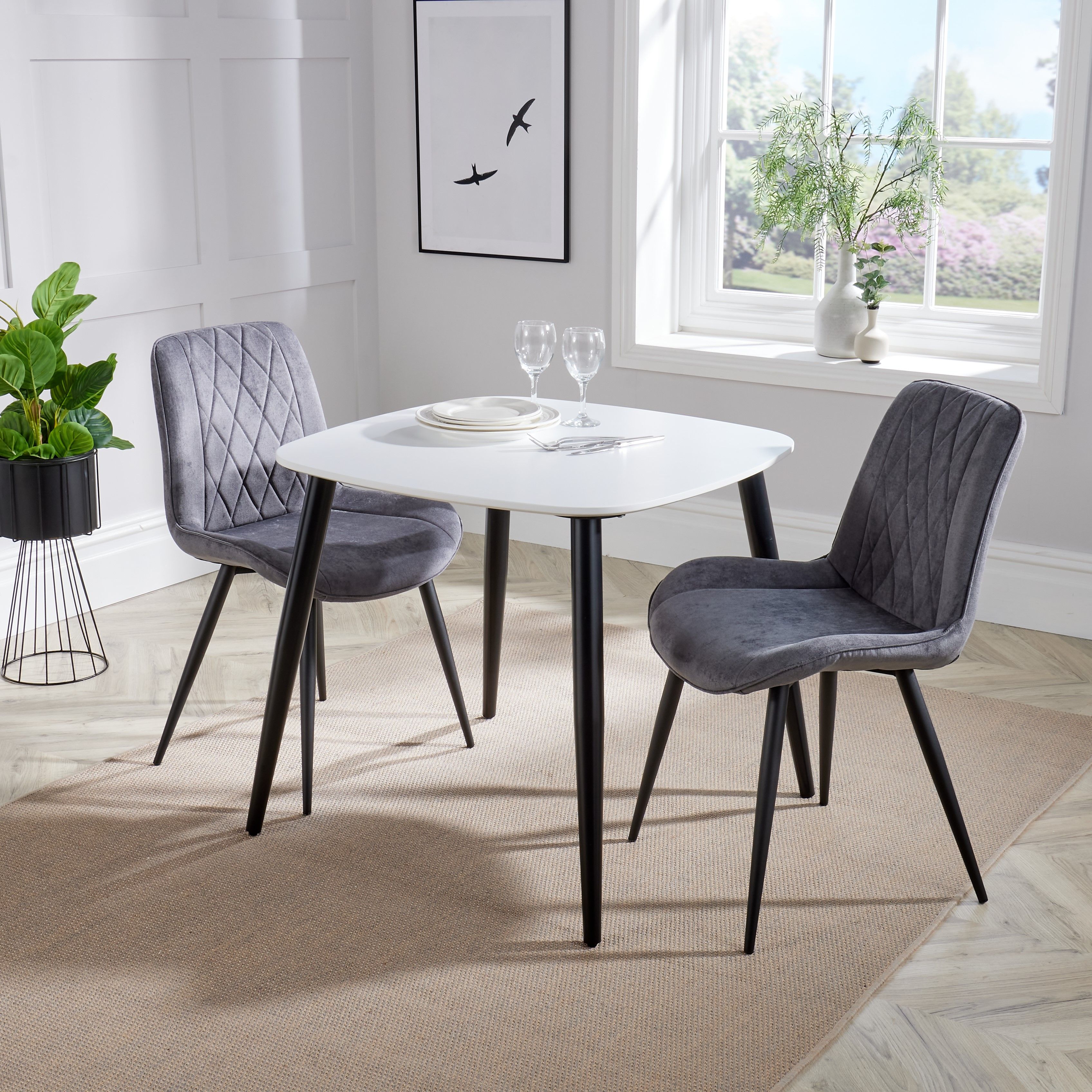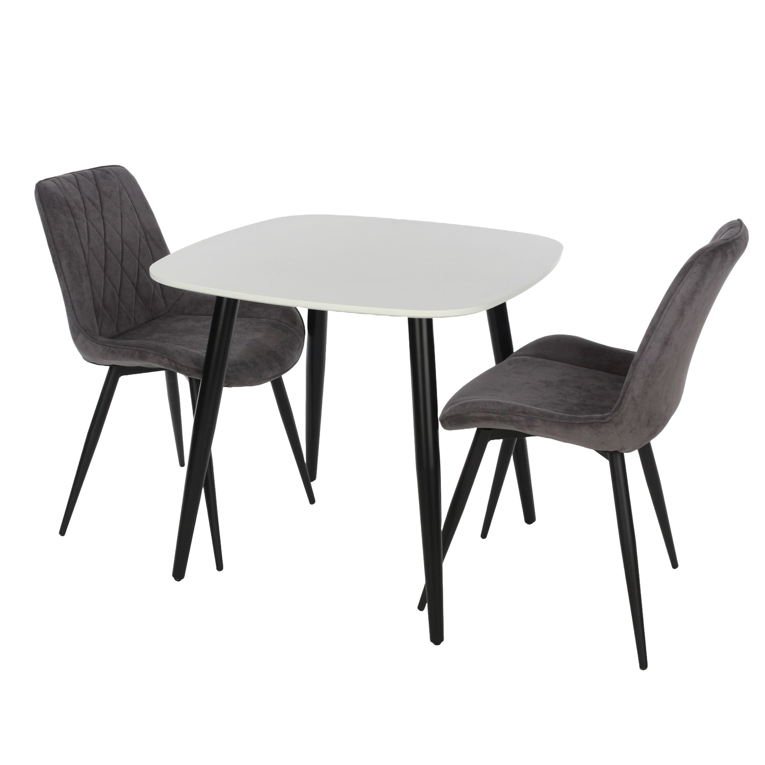 NEXO Square Dining Table with 2 Diamond Stitch Fabric Chairs - White with Grey