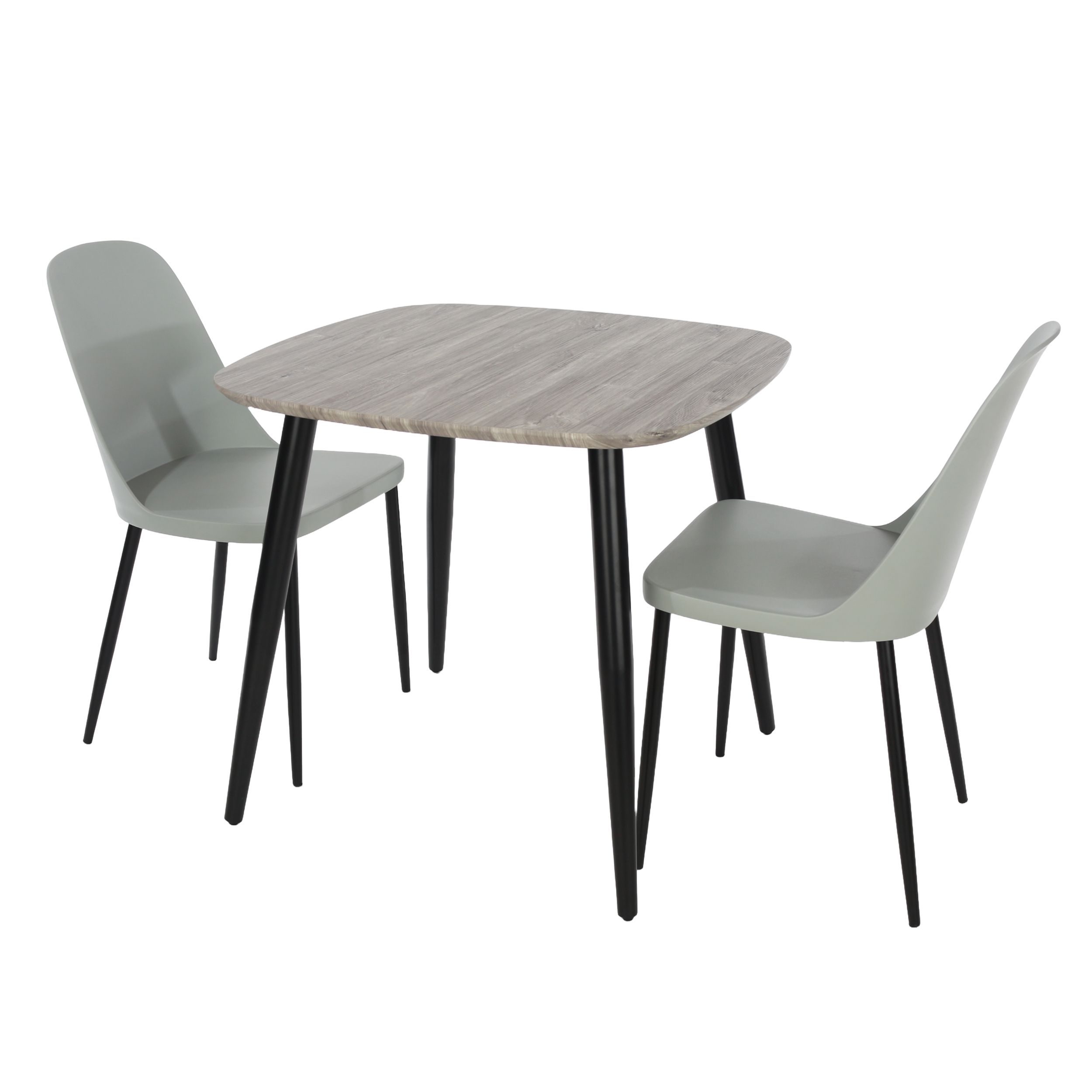 NEXO Square Dining Table with 2 Duo Plastic Chairs - Grey Oak with Grey
