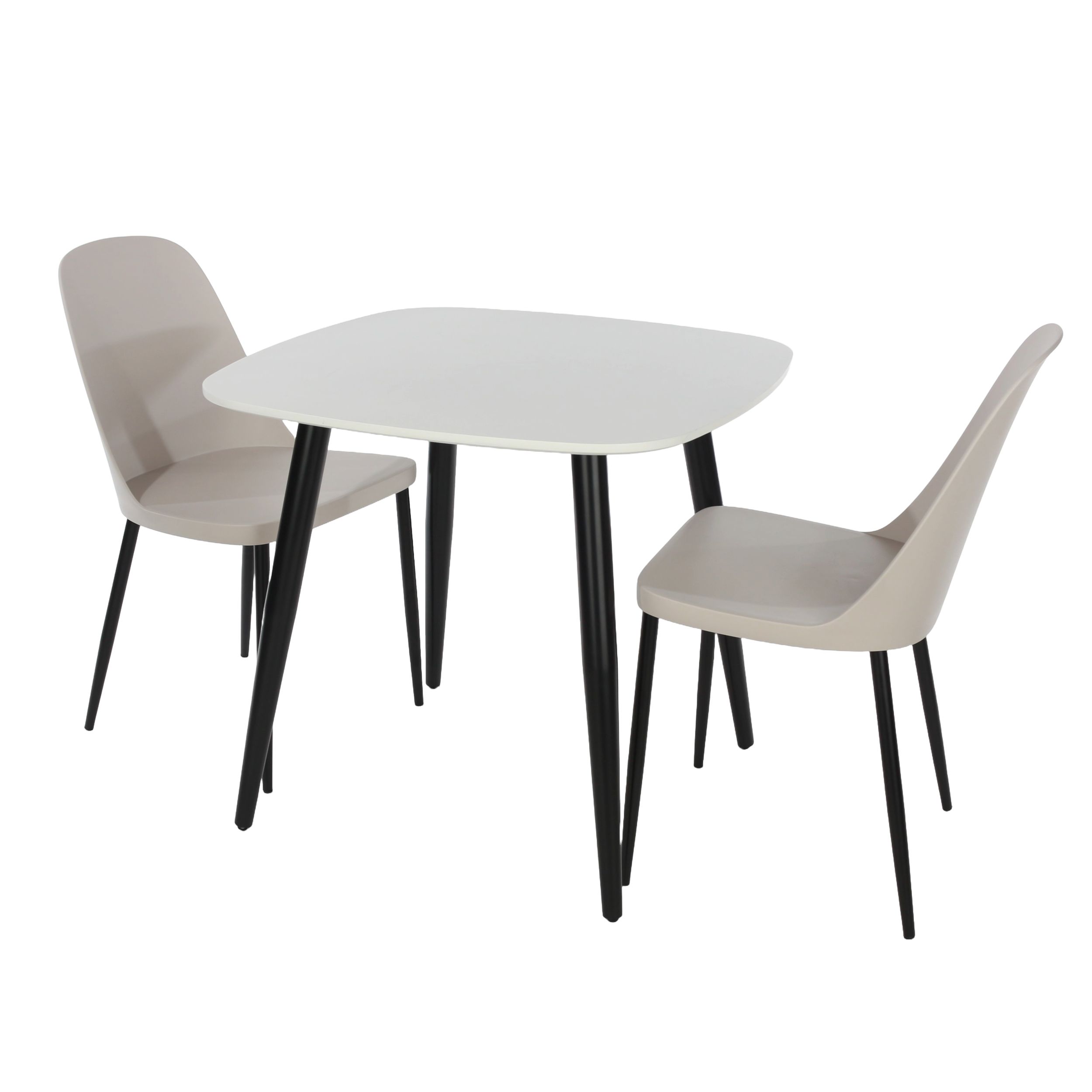 NEXO Square Dining Table with 2 Duo Plastic Chairs - White with Calico