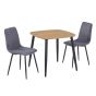 NEXO Square Dining Table with 2 Straight Stitch Fabric Chairs - Light Oak with Grey