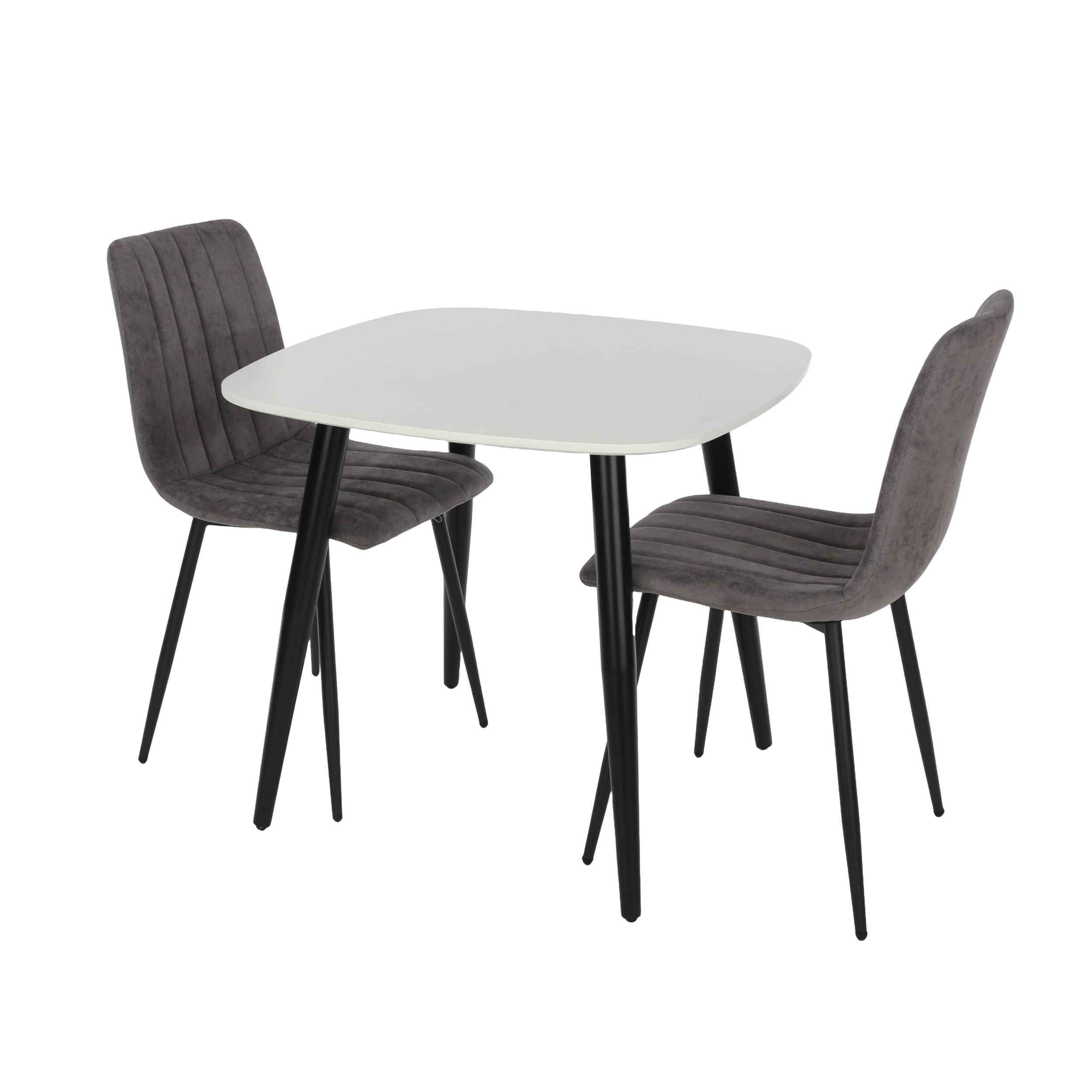 NEXO Square Dining Table with 2 Straight Stitch Fabric Chairs - White with Grey