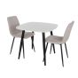 NEXO Square Dining Table with 2 Straight Stitch Fabric Chairs - White with Natural