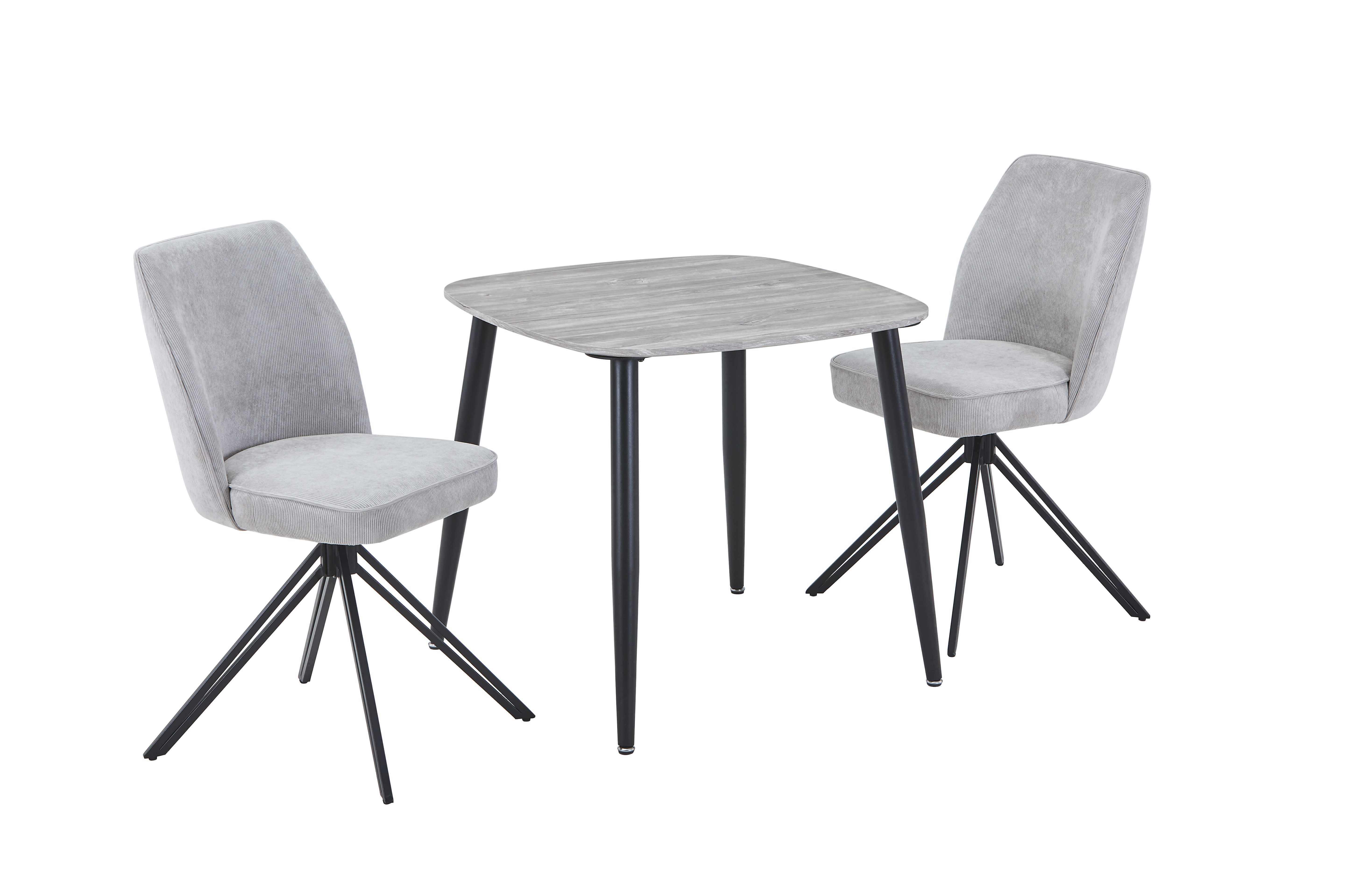 NEXO Square Dining Table with 2 Swivel Fabric Chairs - Grey Oak with Light Grey