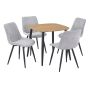 NEXO Square Dining Table with 4 Cord Diamond Stitch Fabric Chairs - Light Oak with Light Grey