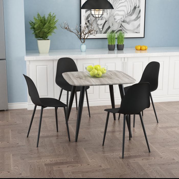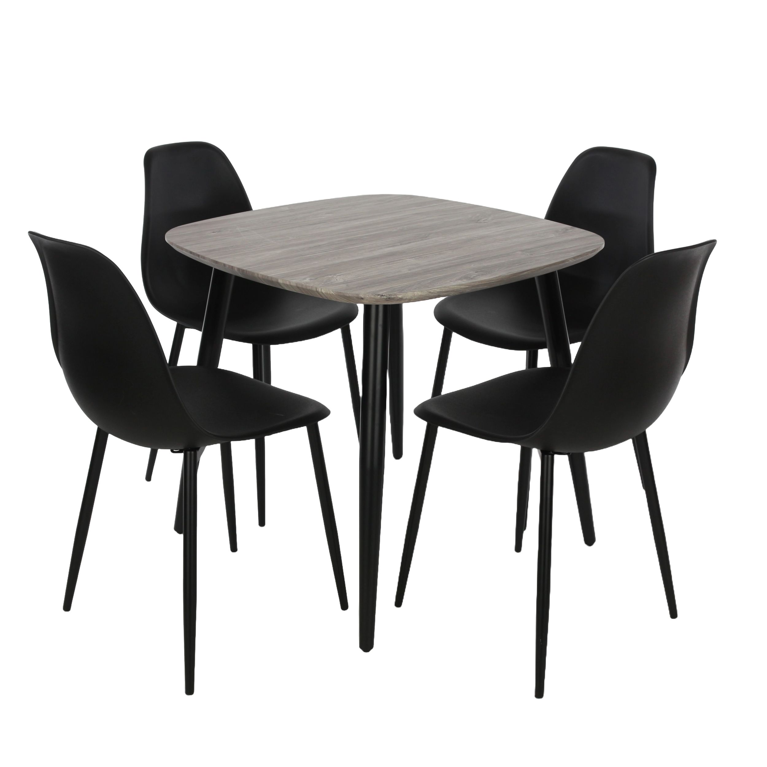 NEXO Square Dining Table with 4 Curve Plastic Chairs - Grey Oak with Black