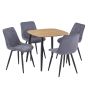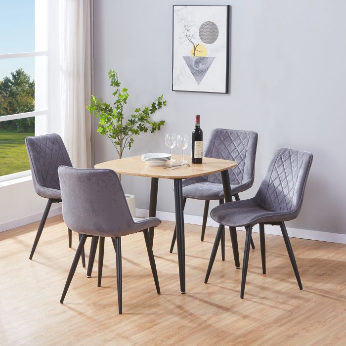 NEXO Square Dining Table with 4 Diamond Stitch Fabric Chairs - Light Oak with Grey