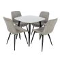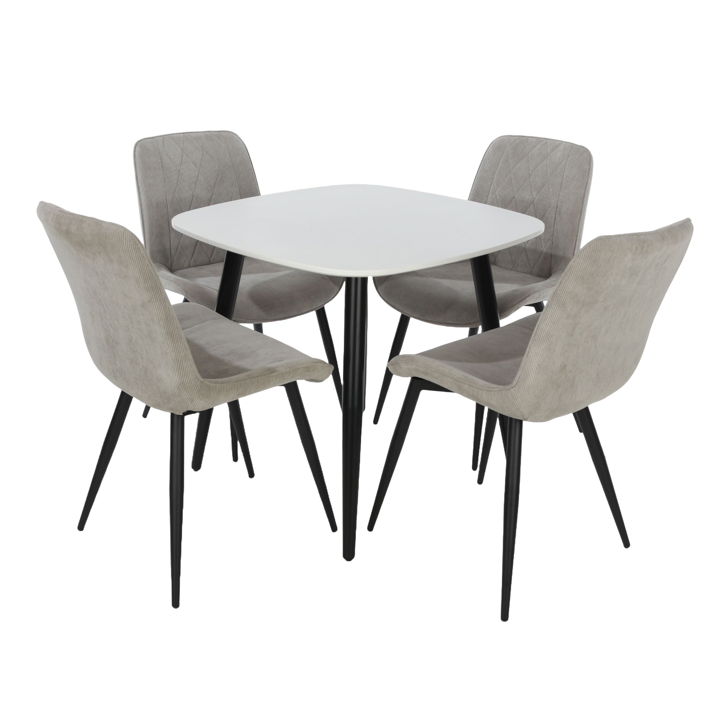 NEXO Square Dining Table with 4 Diamond Stitch Fabric Chairs - White with Light Grey