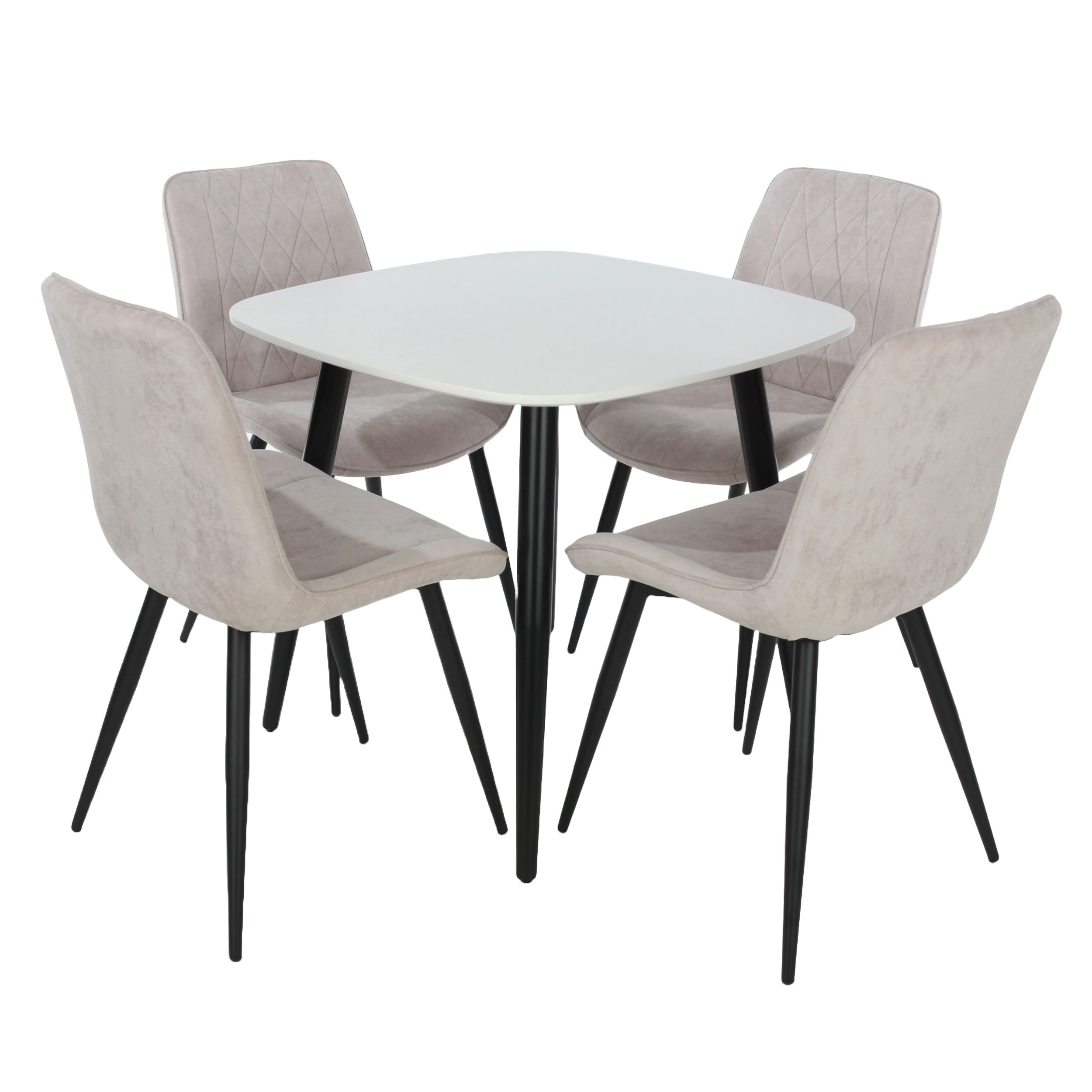 NEXO Square Dining Table with 4 Diamond Stitch Fabric Chairs - White with Natural