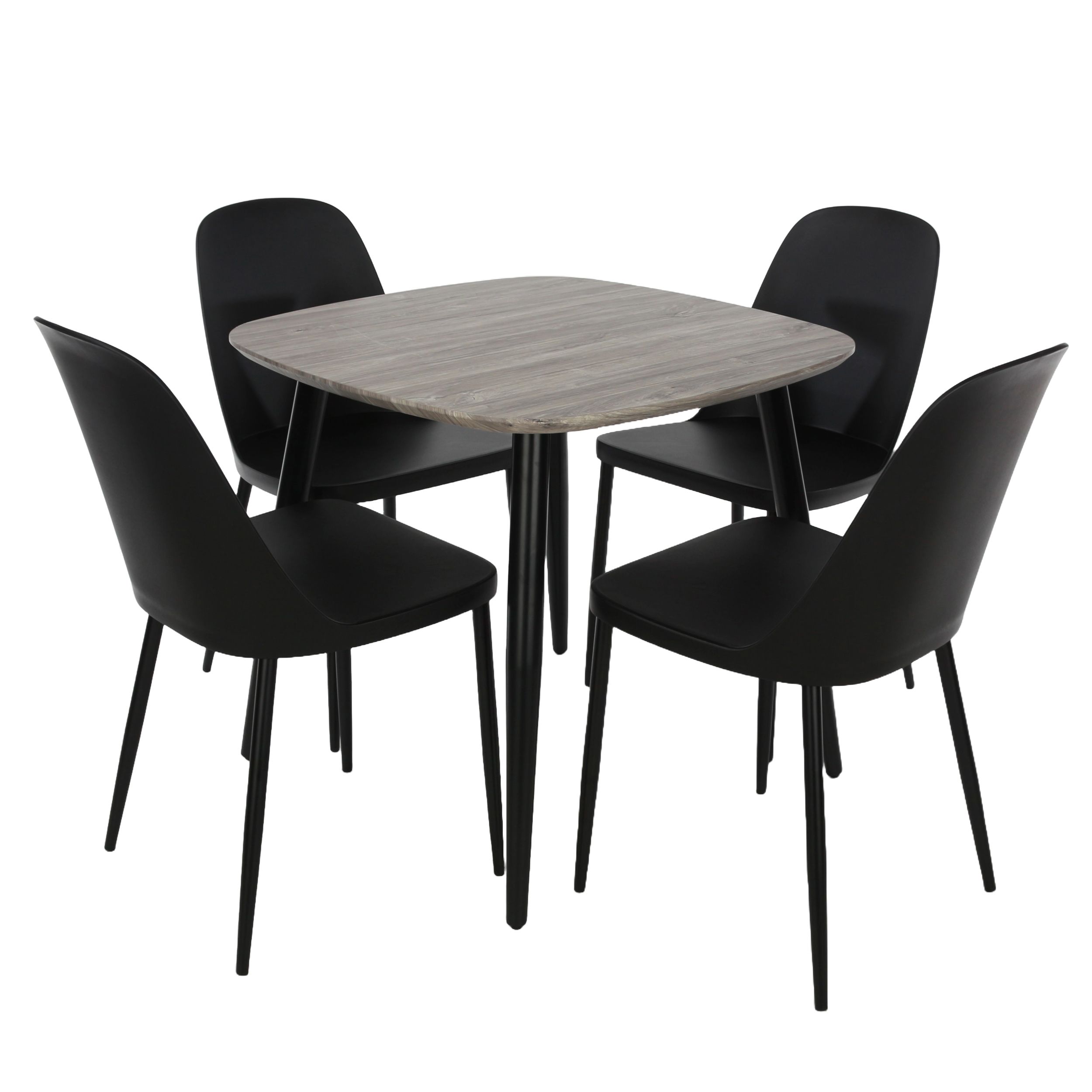 NEXO Square Dining Table with 4 Duo Plastic Chairs - Grey Oak with Black