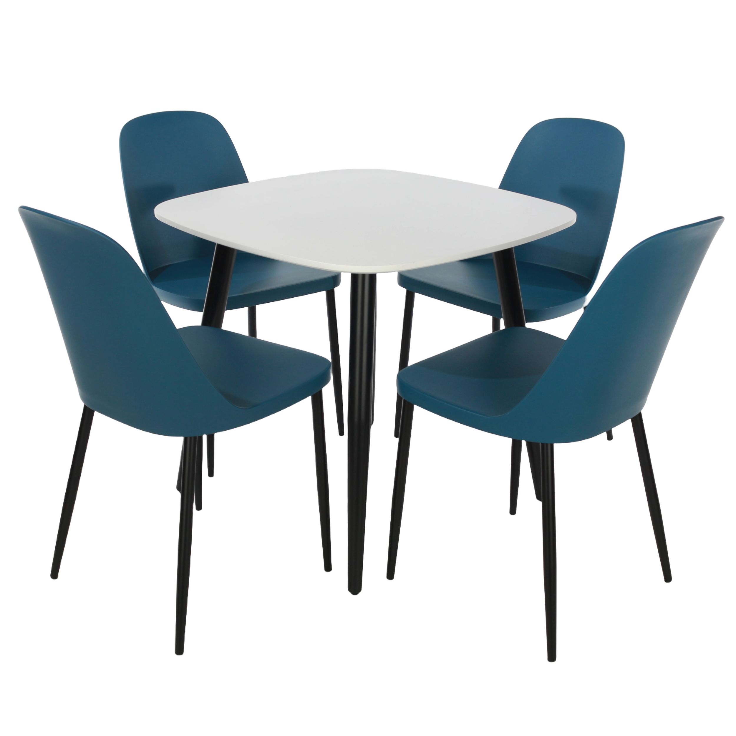 NEXO Square Dining Table with 4 Duo Plastic Chairs - White with Blue