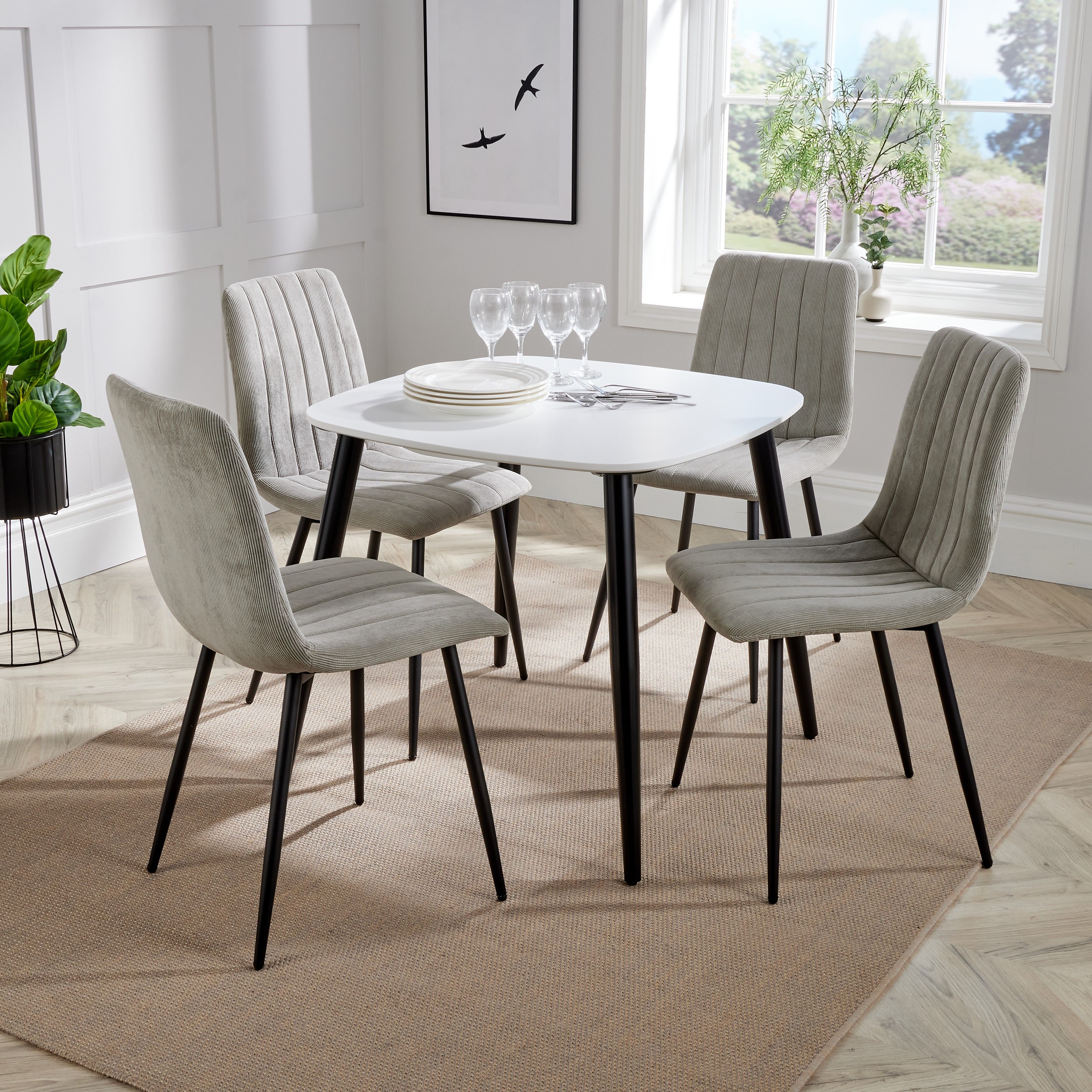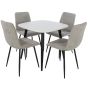 NEXO Square Dining Table with 4 Straight Stitch Fabric Chairs - White with Light Grey