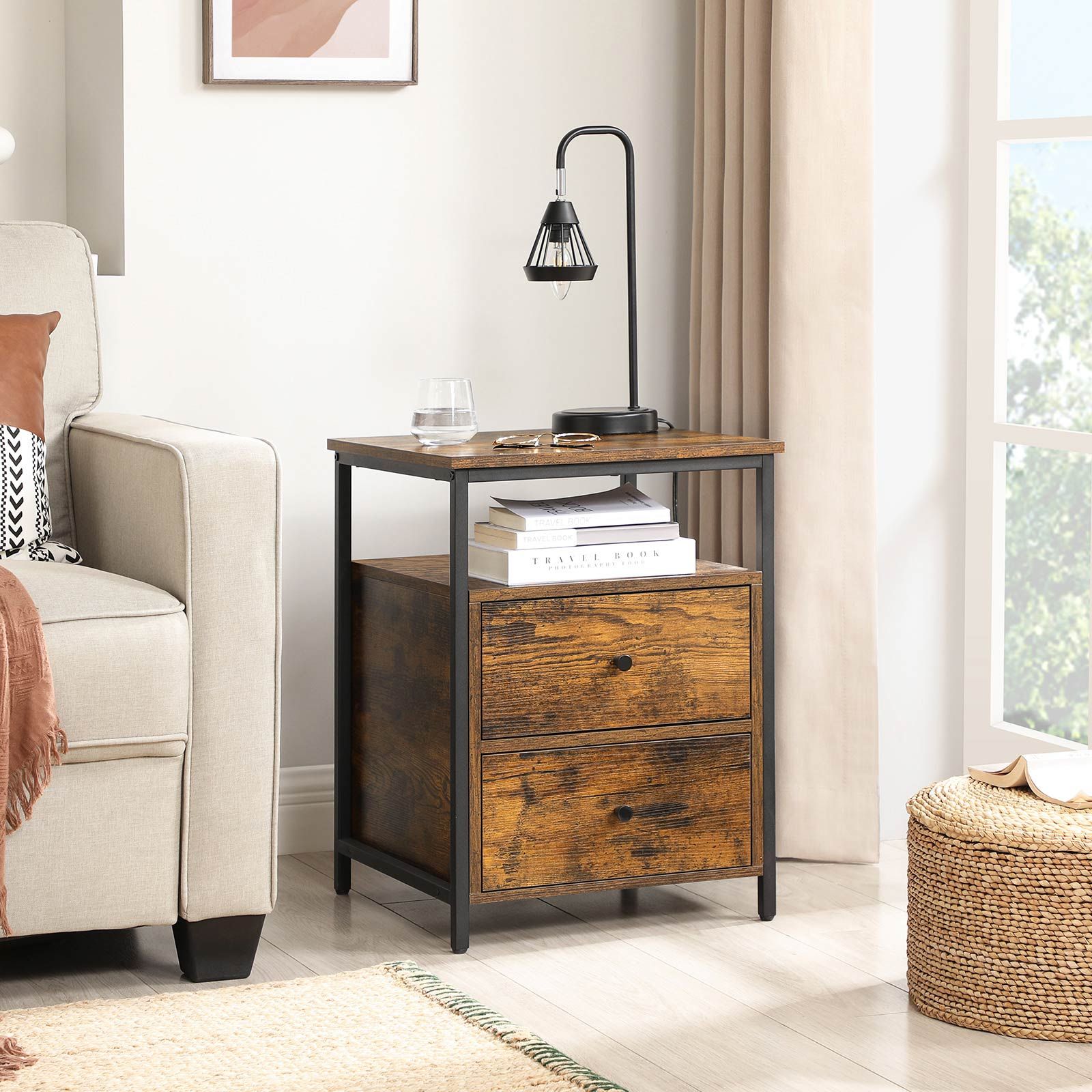Bedside Table - HAZEL Nightstand Rustic Brown 45cm