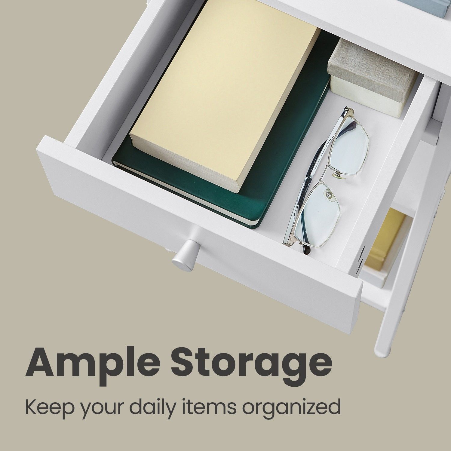 Nightstand - VERRA Space Saving Drawer and Shelves - White