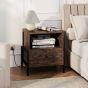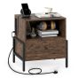 Nightstand with Charging Station 3-Tier Bedside Table with Drawer-Brown