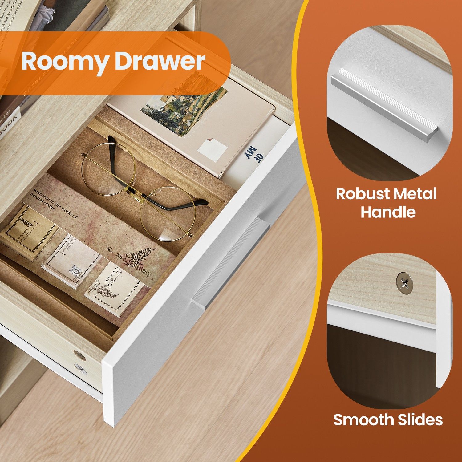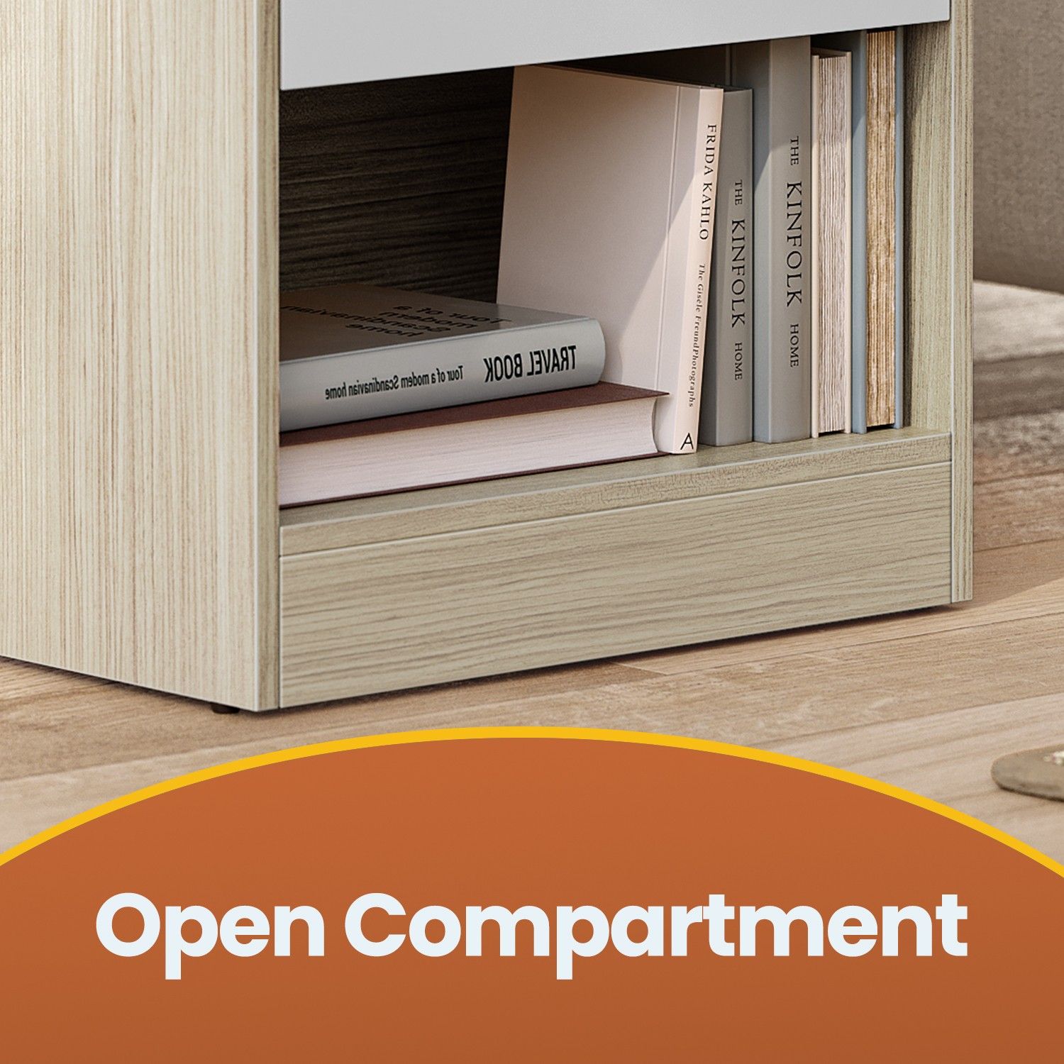 Nightstands - VERRA Set of 2 Side Tables with Drawer and Shelf - Beige