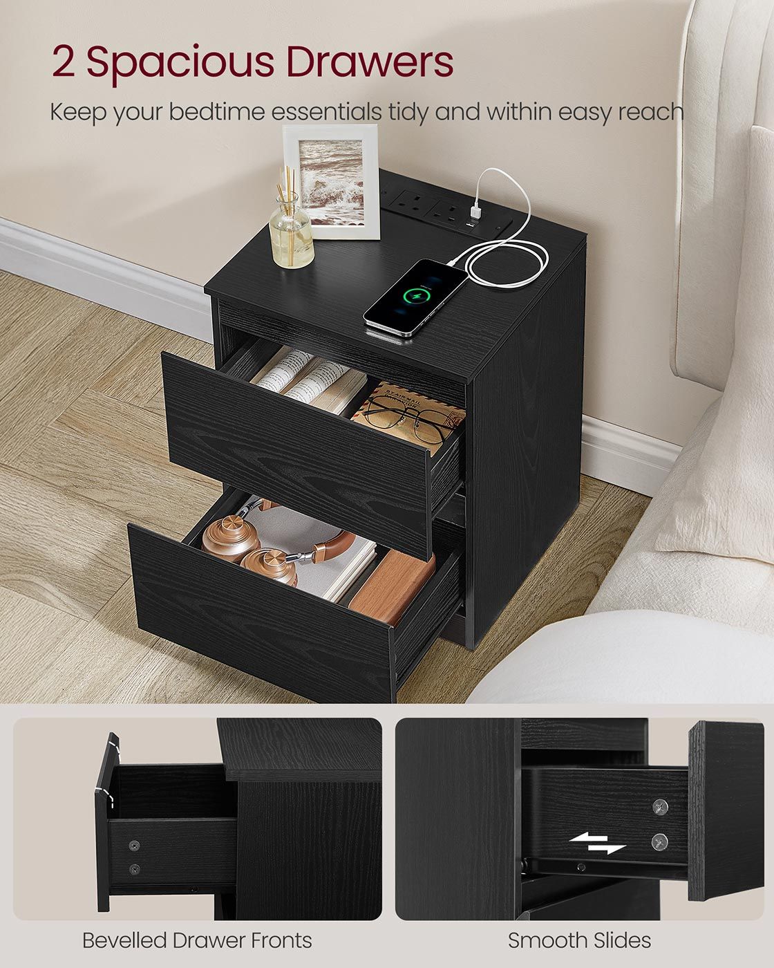 Nightstands - ZARZA KAILYN Collection Set of 2 with Charging Station - Ebony Black
