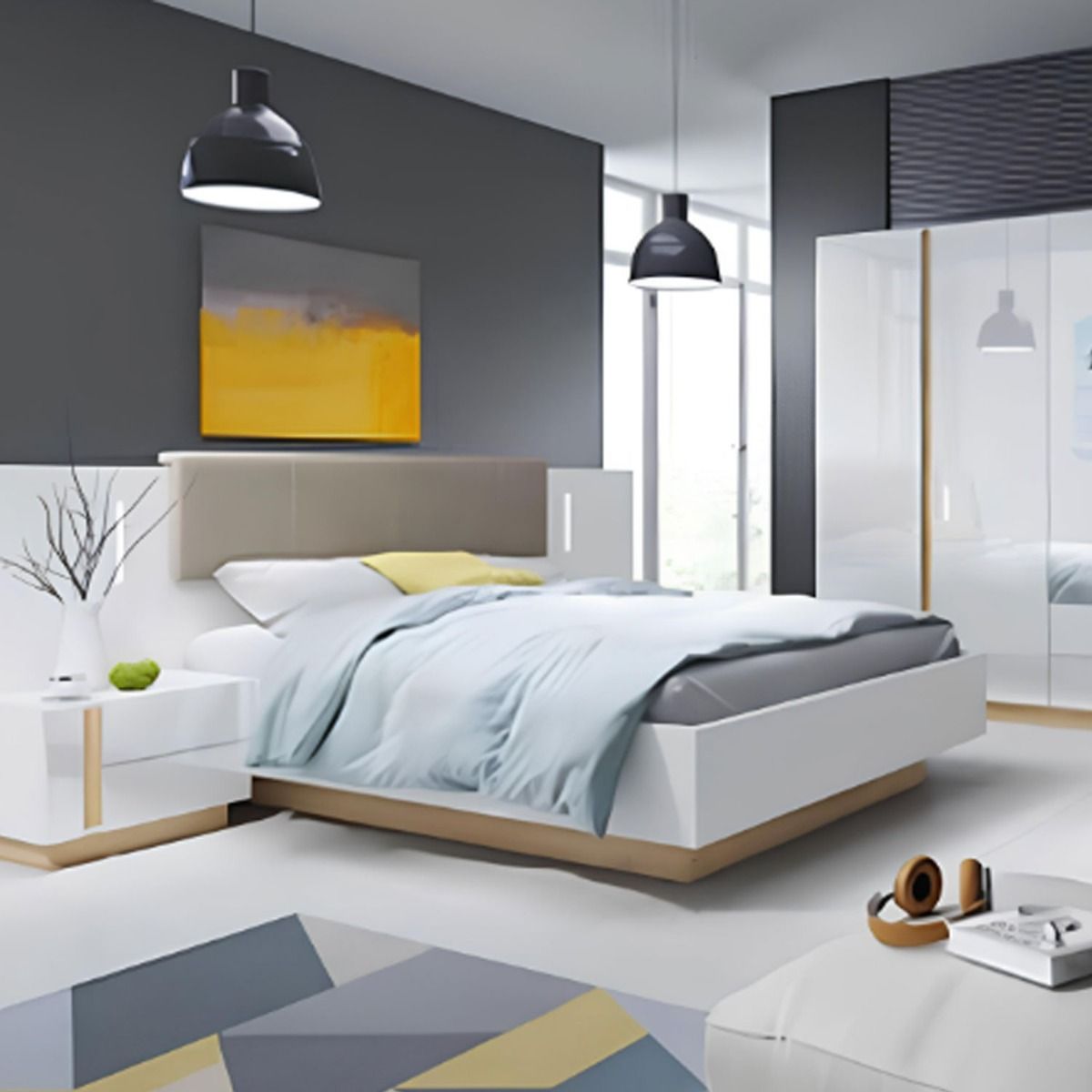 - King-size bed frame with an upholstered headboard for added comfort and style.