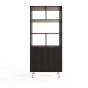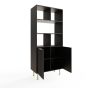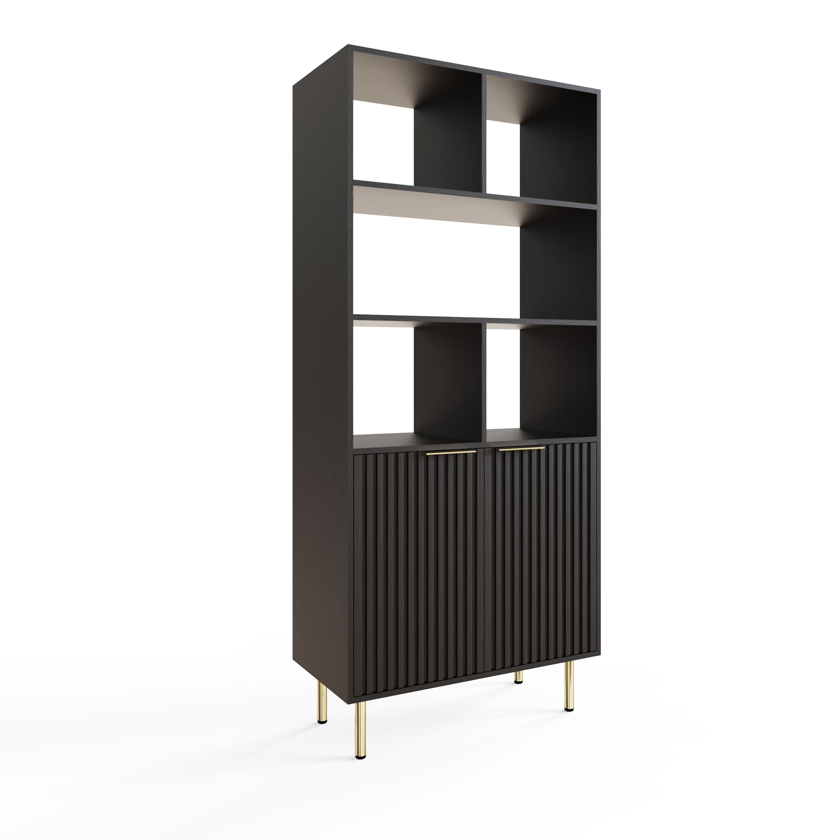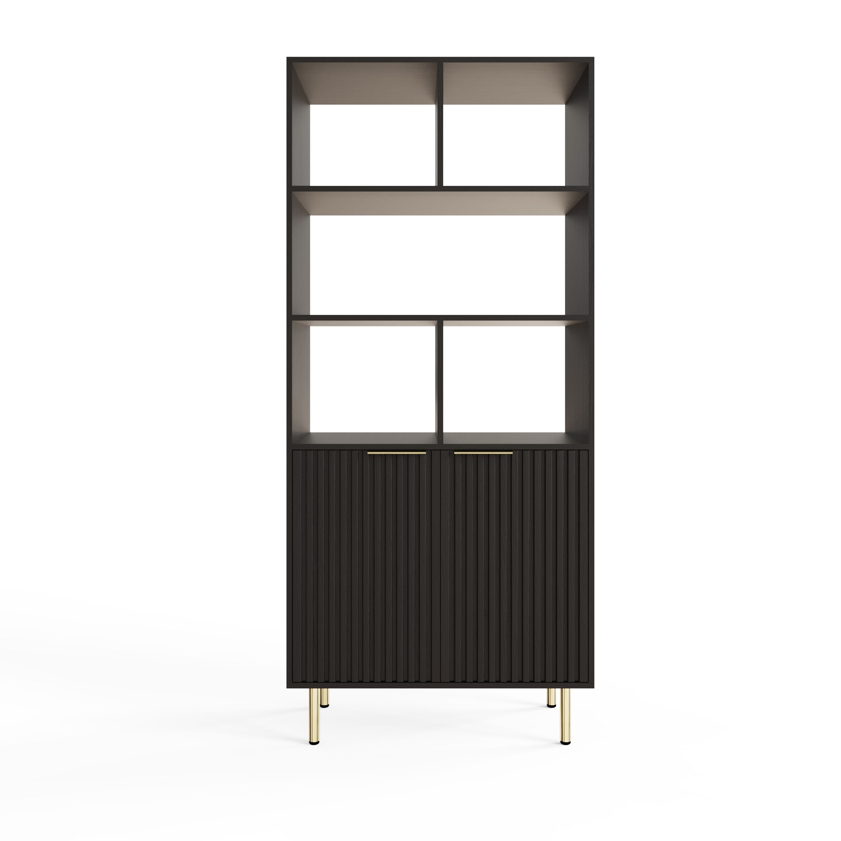 The NIVARA Bookcase features an asymmetric layout that blends modern design with refined simplicity. It combines open shelving for display with a closed cabinet for concealed storage. Ribbed detailing and slim metallic legs add texture and sophistication, making it a versatile and stylish addition to living rooms, studies, or bedrooms.