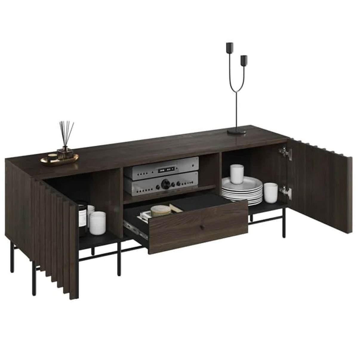 Redefine your entertainment area with the Nixie Vector TV Cabinet in Portland Ash – a perfect blend of style and functionality. Crafted from high-quality 22mm & 16mm laminated board, this sleek cabinet features two hinged doors, concealing a spacious open compartment and a convenient drawer for organized storage. Supported by black metal legs, it adds a modern touch to your space, weighing 42kg for stability. Assembly is required, promising a personalized and chic upgrade to your home entertainment setup.