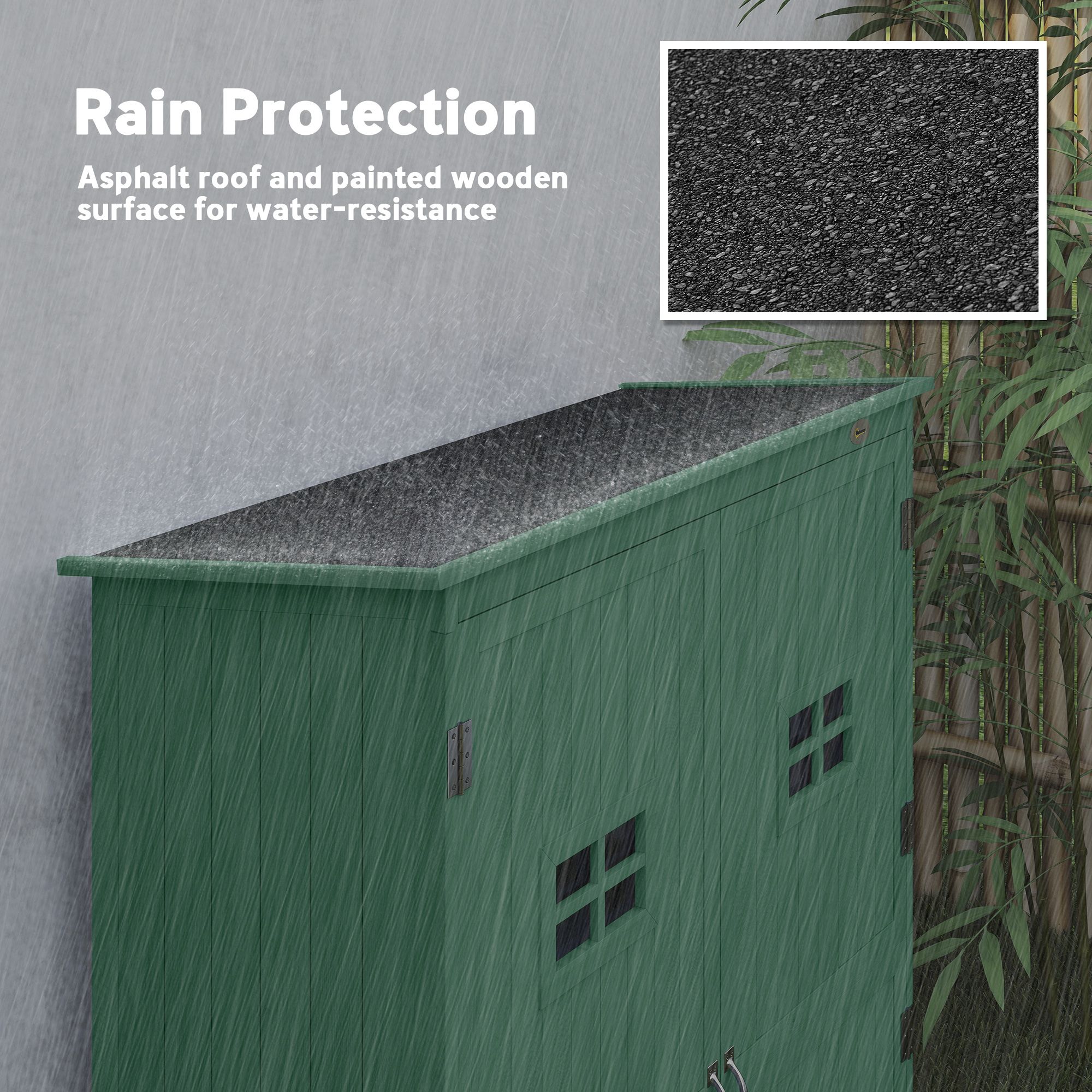 Solid fir wood: this outdoor storage cabinet is a strong and tough piece that will last in your garden for the long-term. Large storage space: with three shelves on the left and a large space on the right, our sheds and outdoor storage allow you to store and organise your garden tools and equipment with ease, no matter the shape and size. Water-resistant panit coating: protects against mild outdoor elements for longevity in your tool shed. Asphalt roof covering: the roof of the garden storage shed is tilted so water doesn’t collect and stagnate. Covering helps prevent liquids from seeping through and damaging your inside goods. Two doors: with two acrylic windows and a magnetic closing on this garden storage for ease, it keeps everything securely out of sight. Storage shed info: overall dimensions: 164 H x 127. Shelf: 42 W x 57 L x 1tcm. Shelf spacing: 51 cm. Maximum load weight per shelf 15 kg. Assembly required