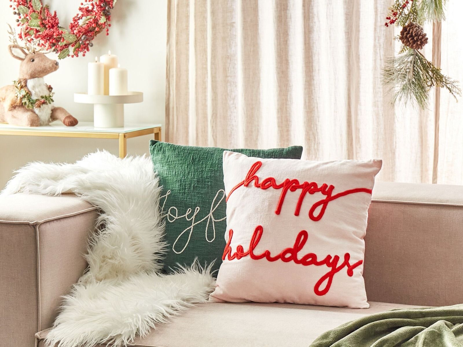 Noelnight Set of 2 Velvet Cushions Christmas Motif 45 x 45 cm - White