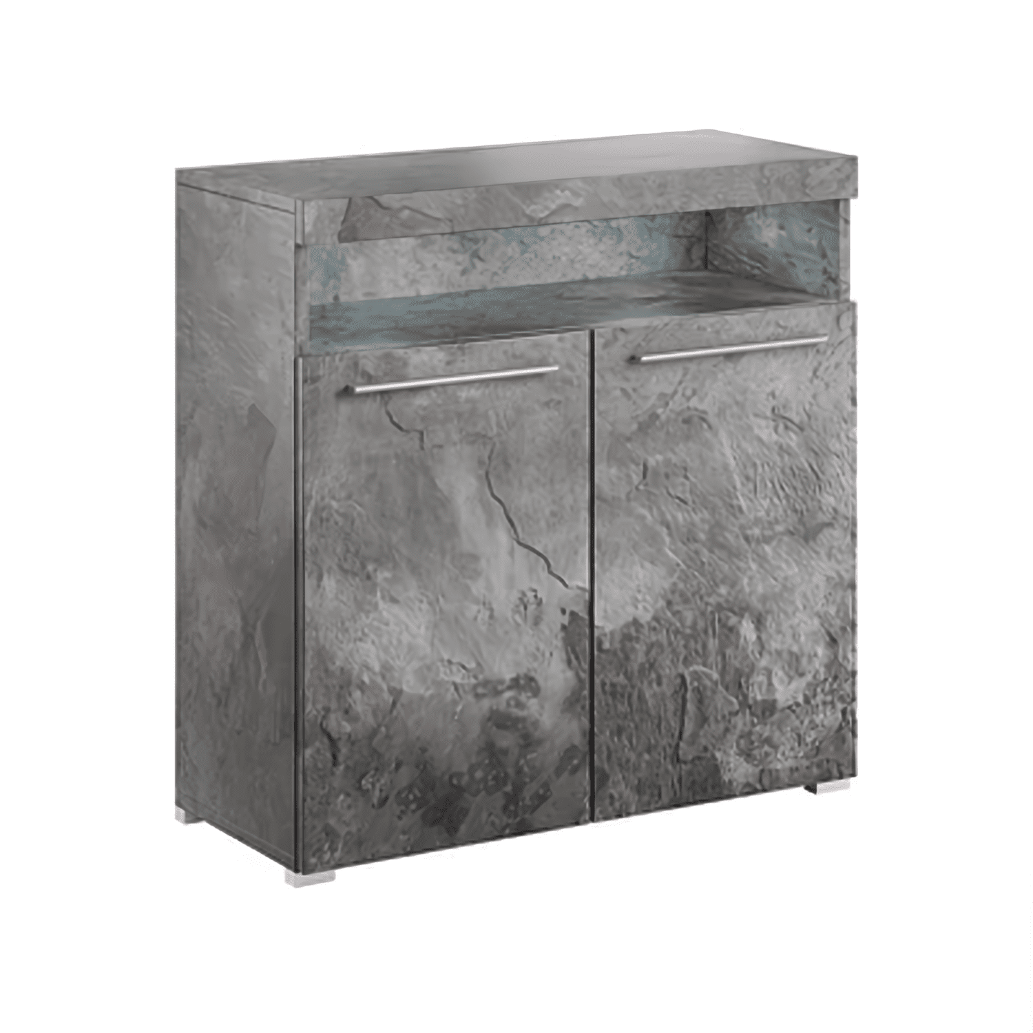 Spruce up your home or office space with this stylish sideboard cabinet. Cleverly crafted and chic in style, it will effortlessly blend in any modern, industrial or contemporary decor. Made from 16mm laminated board, it features two closed and one open compartment for ample storage. This cabinet can be upgraded with LED lights.