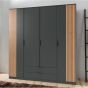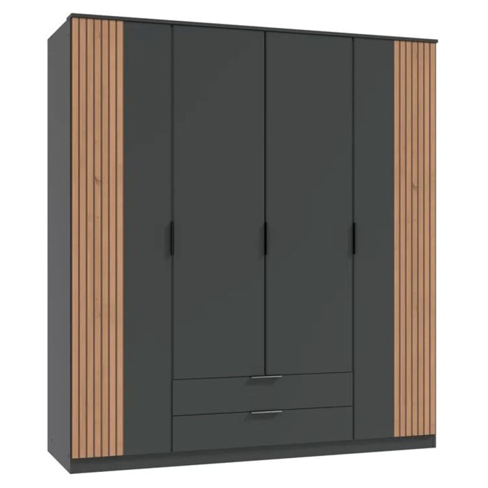 NOMASA 4 Door Wardrobe with 2 Drawers Grey and Oak - 180cm