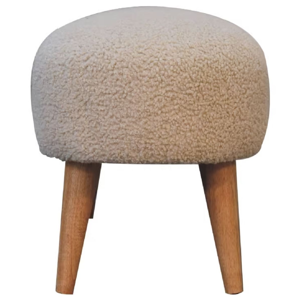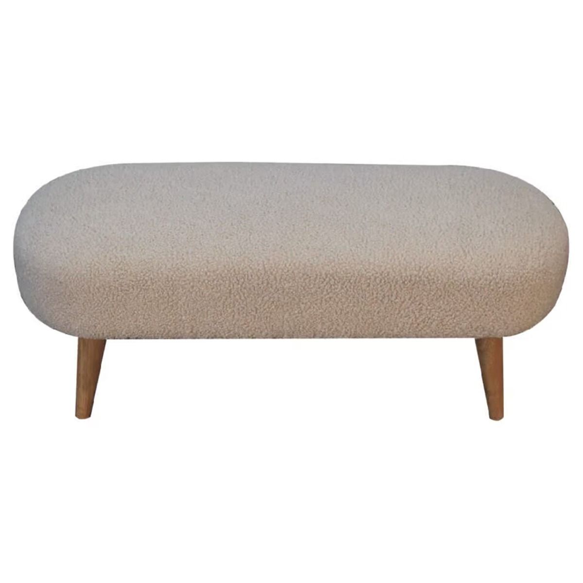 Nordic Style Bench with Curled Cotton Cream Cushion Fabric - Oak Finish
