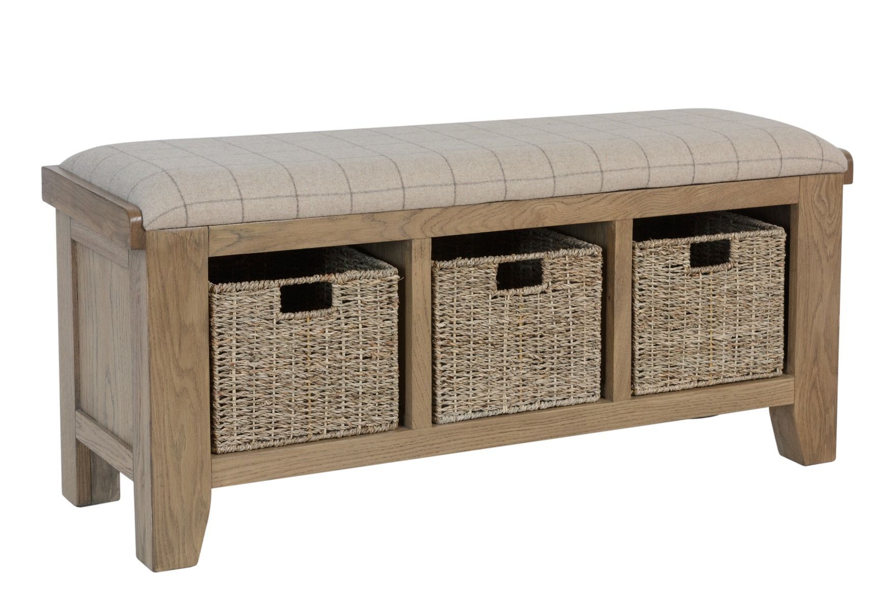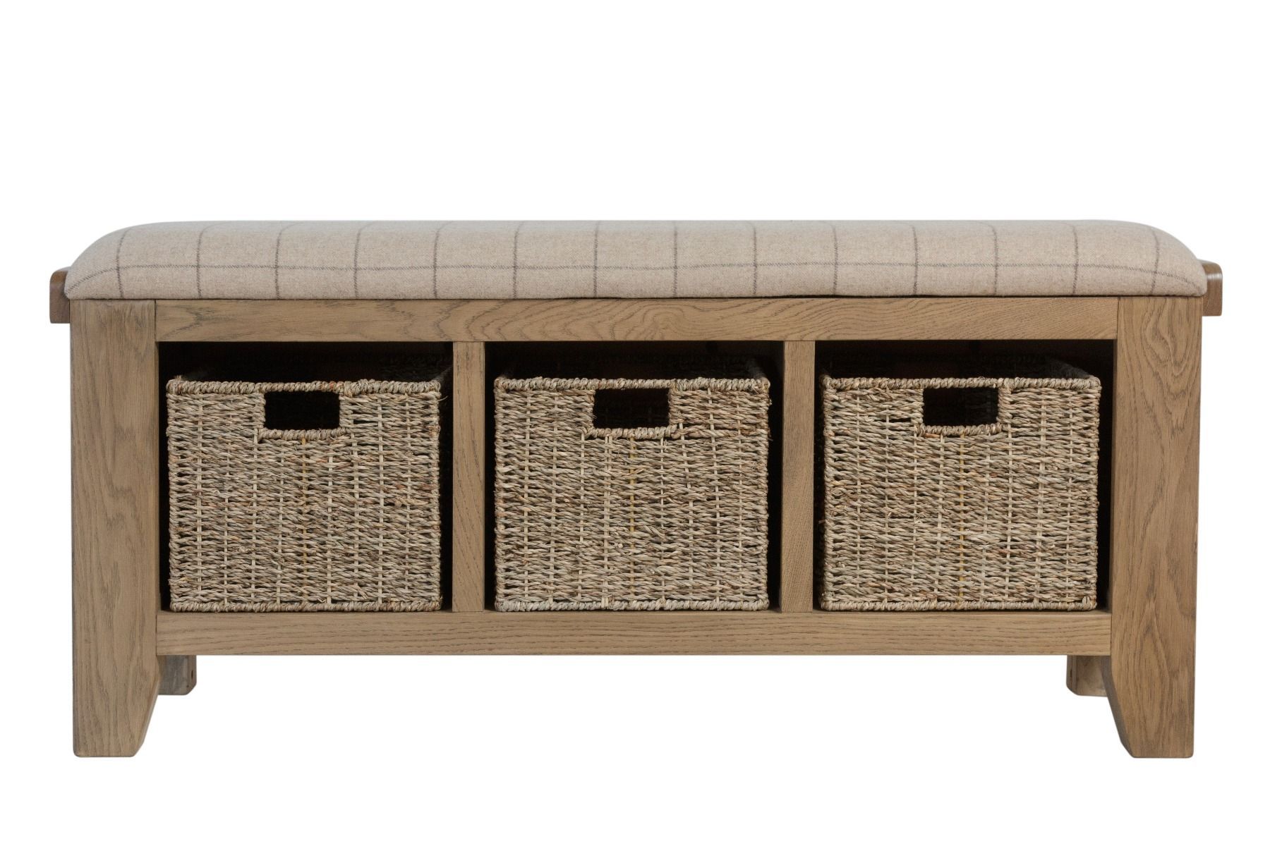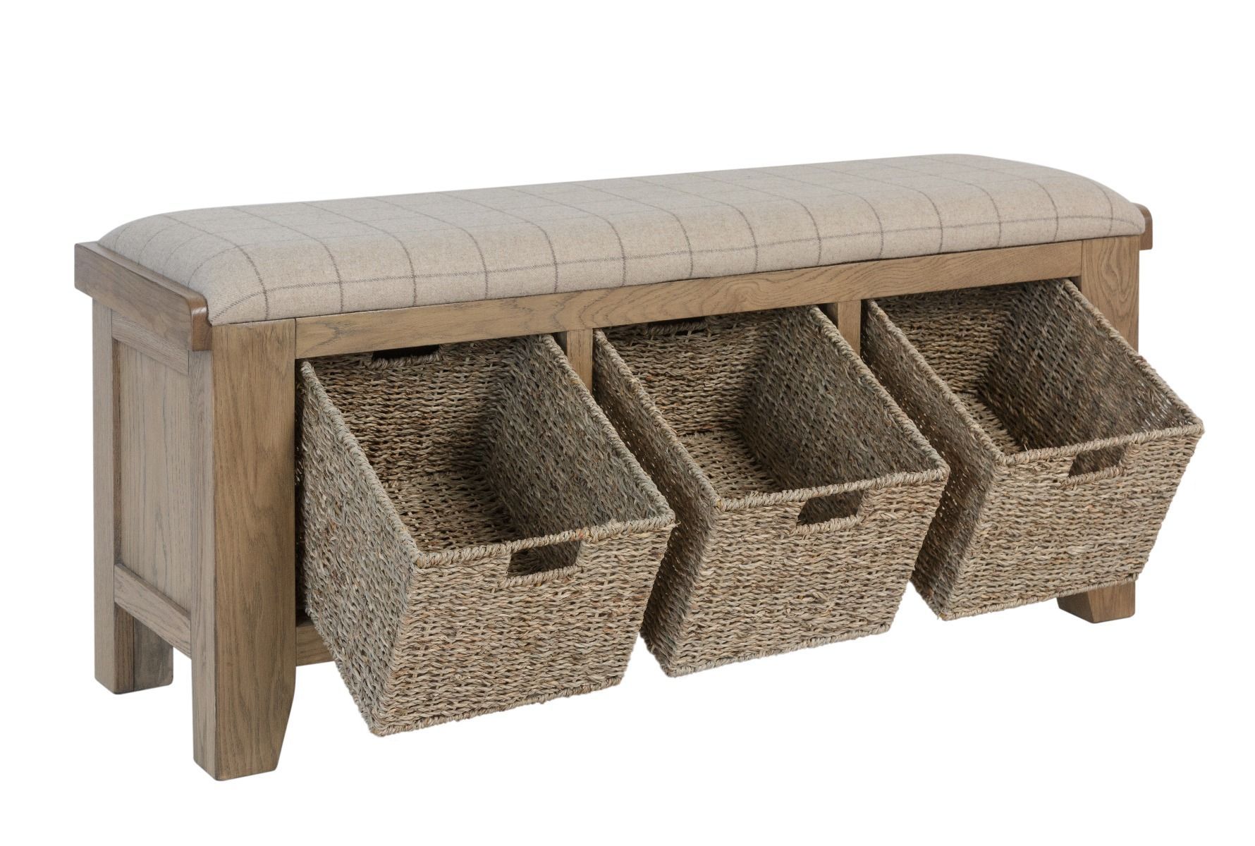 - Hall bench from the Holburn Oak range has 3 baskets supplied for storage