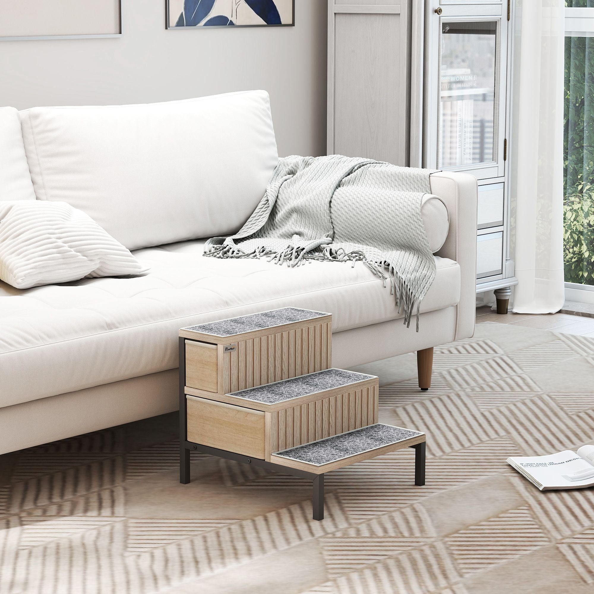 NORLAVEN Dog Step Stairs for Small Dogs and Older Cats with Storage - Light Oak