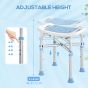 Made for assistance in the shower or bath, our shower chair for the elderly from HOMCOM is suitable for the elderly, injured or those who require extra assistance whilst showering or bathing. Adjustable to four different heights, the shower chair for the disabled help you find the most comfortable and safe position to sit. Its curved seat design with padding makes the shower seat for elderly comfortable to use. It's finished with four large suction foot pads for safety and stability. Shower and bath assistance: Made to give anyone who needs a place to rest whilst showering. This bath seat is great for seniors, disabled and pregnant people. Four-level adjustable height: Set to a position most suitable for you. Curved seats feature a padded panel, so you can sit on this bath stool comfortably. Drainage holes to prevent water build-up. Aluminium frame: Strong and steady core when you sit, this bath chair comes with an 'X' panel for extra support. Suction foot pads to grip the wet ground for safety. Compact: Great for smaller bathrooms and showers, making the shower bench suitable for plenty of spaces.
