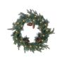 Decorative wreath that will transform your home into a winter wonderland. Featuring faux greenery complemented with artificial pine cones, this festive decoration is perfect for hanging on walls or using as a table centerpiece, instantly adding a touch of cosy holiday charm to any space. Turn on the included LED lights and elevate your Christmas decor with this timeless and versatile wreath that brings the spirit of the season indoors.