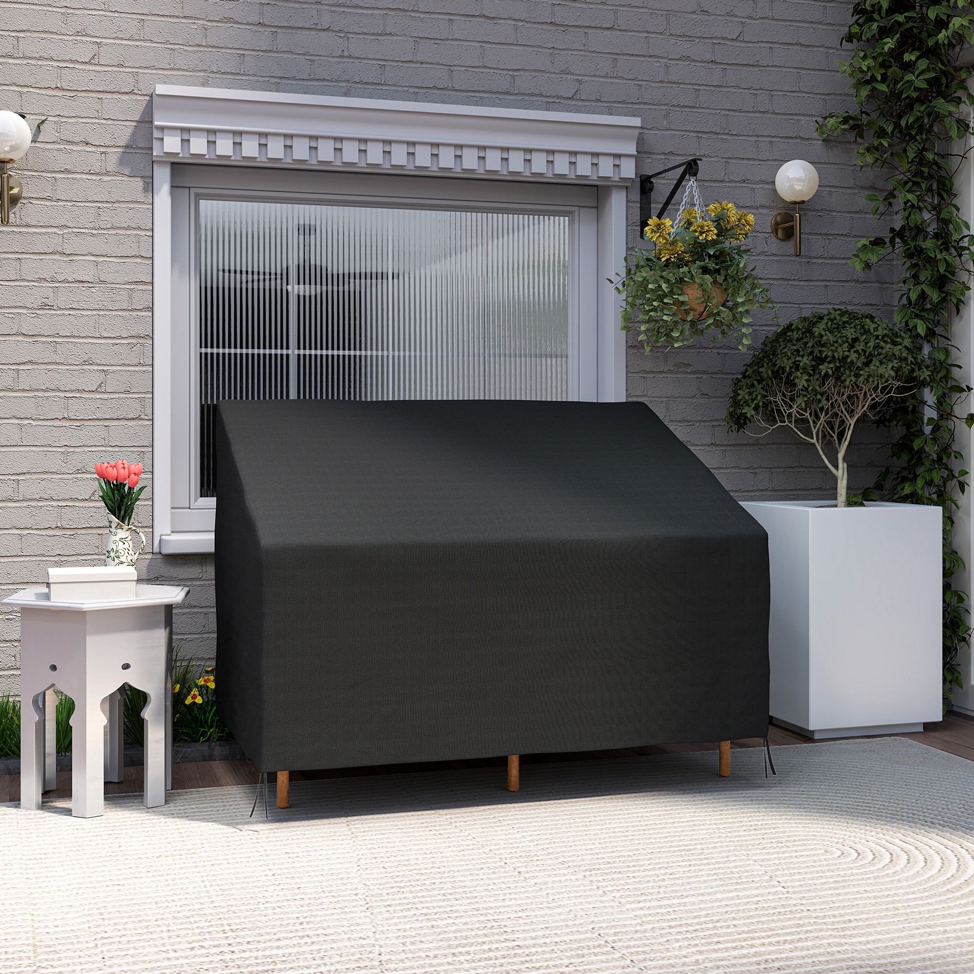 This classic Patio Furniture Cover from Outsunny is designed to keep your two-seat sofa set looking great. Made from high grade oxford cloth, our patio furniture covers can resist cracking, fading, tearing and mould. The fabric is coated with PVC for increased water resistance and further protection from the elements. Because of its waterproof function, it is easy to be cleaned with a piece of wet cloth. Add it to your chairs for better furniture protection. Garden keeper: Suitable for an outdoor two-seat sofa. Provide protection for your outdoor furniture from protecting your patio furniture from dust, dirt, sun and rain for year-round use. 600D Oxford cloth: Solid oxford fabric with waterproof PVC coating which has strong toughness, tear-resistance and durability, providing a multi-layer defense. Windproof: With fixing bandage in four corners provide an additional fix. So your garden chair cover stays on during the windiest of days. Easy to use: It's very easy to clean, just wipe with a damp cloth and dry it up in the sun. Easy and convenient to cover and remove.