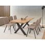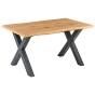 Simple yet intriguing, this dining table is a real eye catcher and works with contemporary, modern or loft inspired interiors. The tabletop, constructed of paper veneered MDF finished in brown, strikes a unique look thanks to its irregular edges. X cross legs made from powder coated metal in black colour add a modern touch to the piece, at the same time providing stability. For daily use, it can easily seat 4 people, but with the butterfly leaf extension, you can add additional space to sit your extra guests.