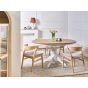 Bring a touch of vintage charm to your dining area with this beautifully styled table. The retro inspired pedestal and four gently curved legs, crafted from solid rubberwood in a white finish, give it a light, welcoming feel. The round tabletop, finished with a light ash wood veneer, features a butterfly mechanism for easy extension. Its timeless design and quality build mean it’ll stay looking great for years to come, whatever your style.