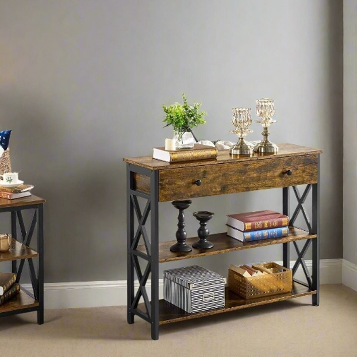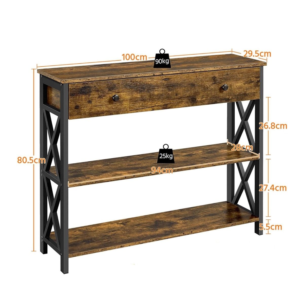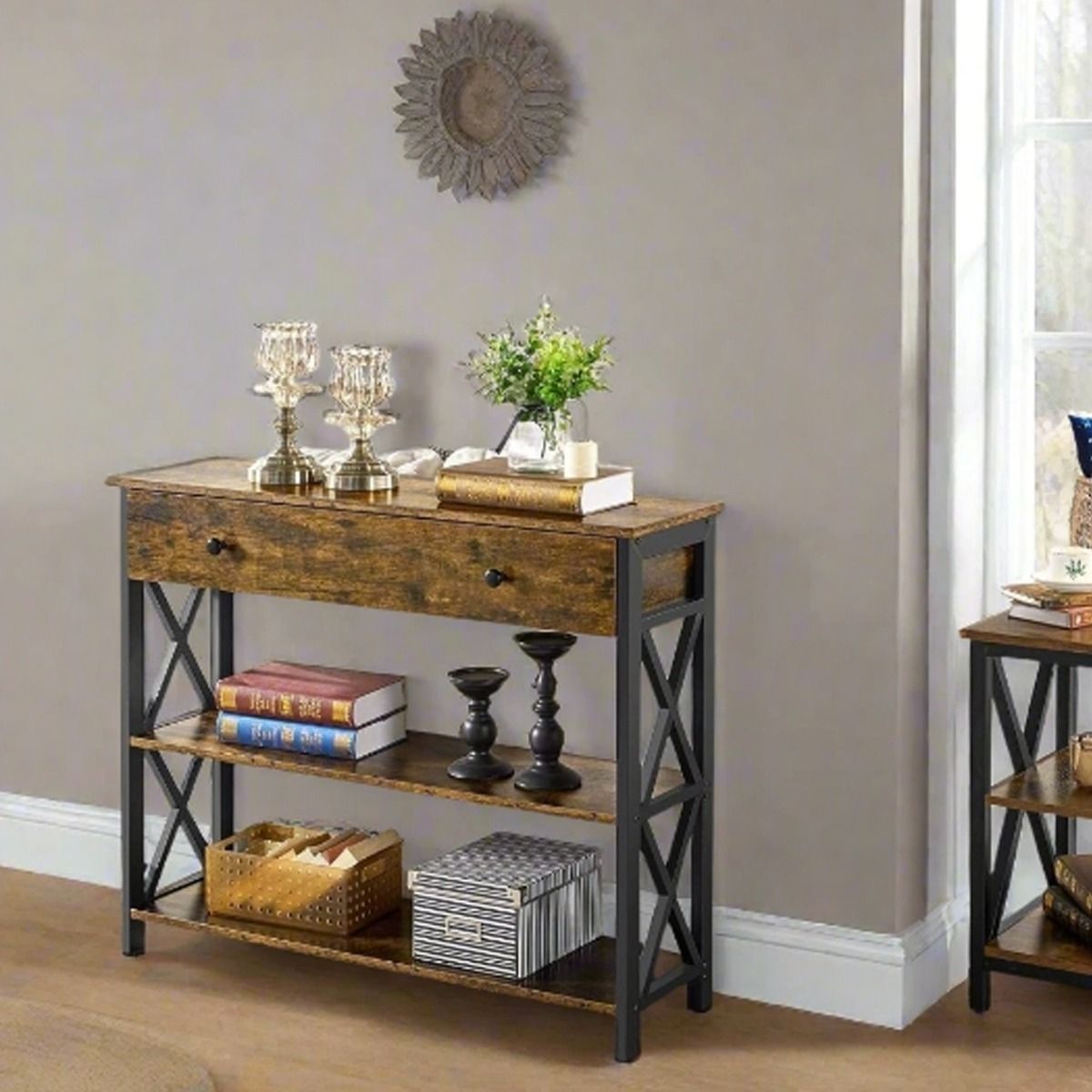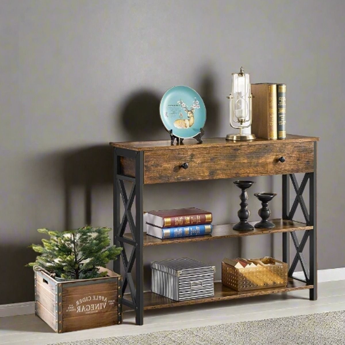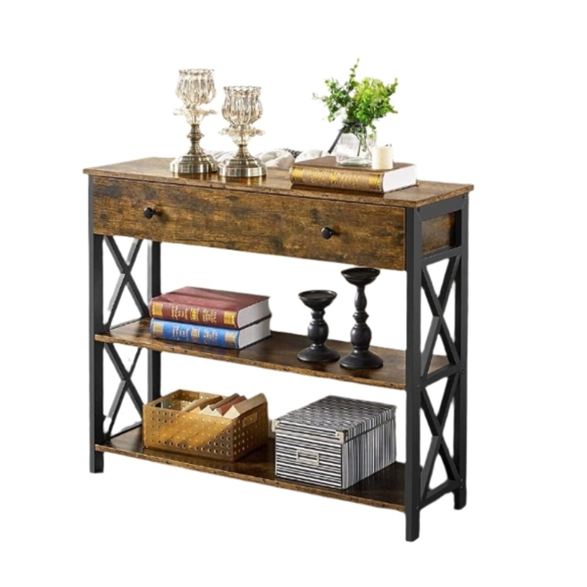 NOVATRA Console Table Table with Drawer and 2 Shelves - Rustic Brown