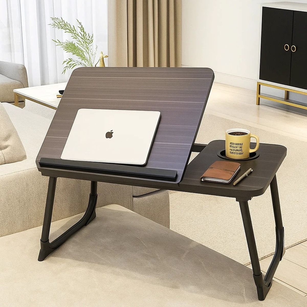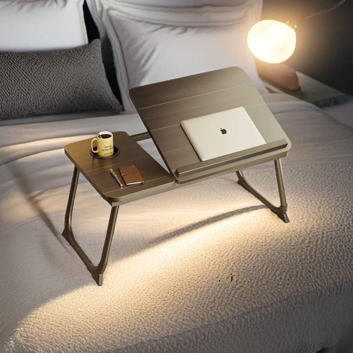 NOVATRA Laptop Table Folding Bed Tray Desk with Cup and Device Slot - Black
