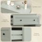 Flexible & spacious storage: features a wide drawer and a two-tier cabinet with a three-level adjustable shelf—great for organising everything from dishes and wine to kitchen gadgets. Customise your setup for a tidy, stress-free space. Contemporary design: green finish and black metal handles give this kitchen sideboard a modern look, adding a fresh and timeless touch to your living space, blending effortlessly with any decor to bring a calm and unified feel. Multi-room compatibility: thoughtfully sized, this small sideboard fits kitchens, dining rooms, or living rooms, adapting to daily routines and family gatherings for practical and joyful use throughout your home. Robust & safe build: made from melamine-faced particleboard with an anti-tip device, this living room cabinet offers lasting stability and reassurance, ensuring long-term use and peace of mind for busy households. 5 W x 35 D x 80 H cm. Weight capacity: 75 kg (total), 50 kg (top), 10 kg (shelf), 5 kg (drawer). Assembly required