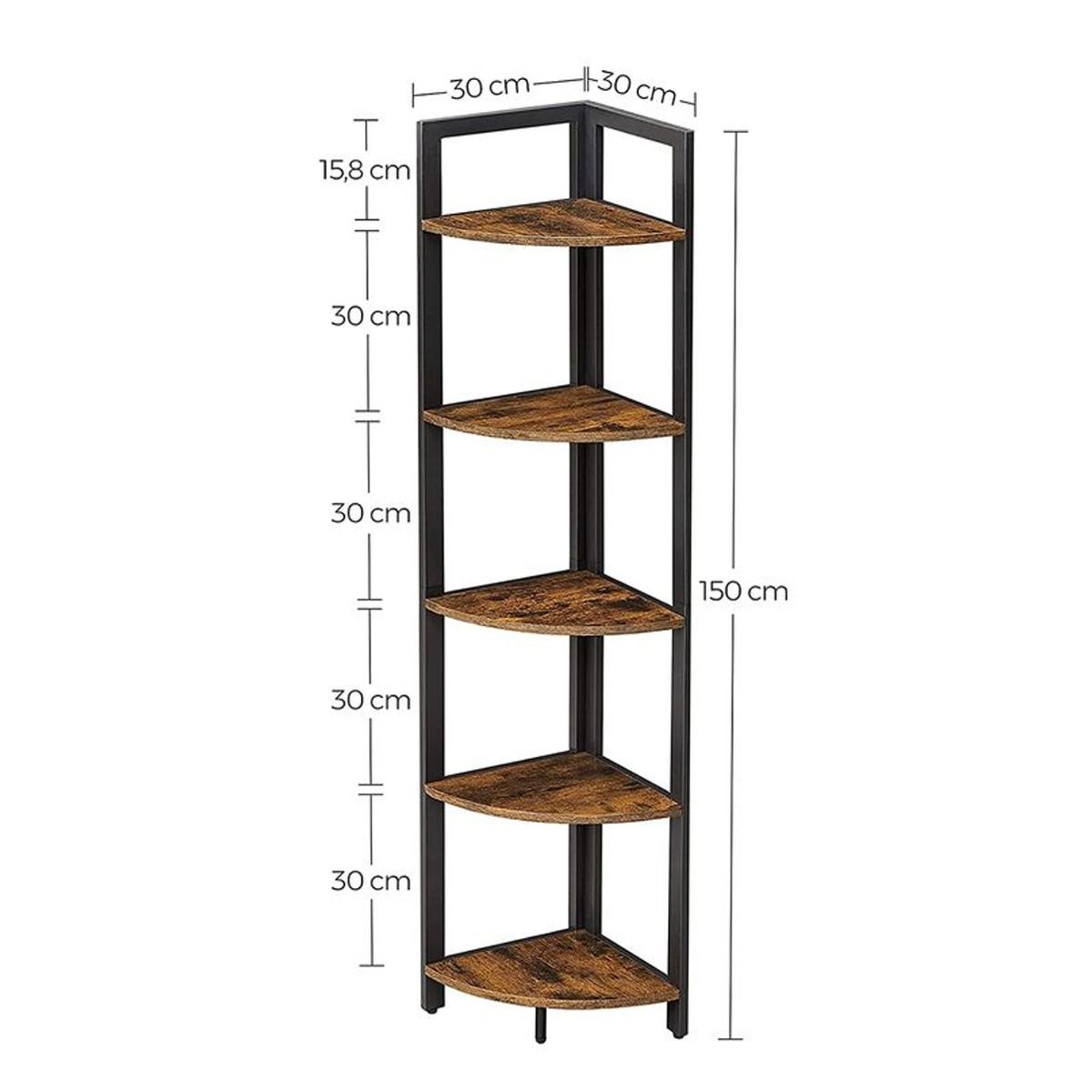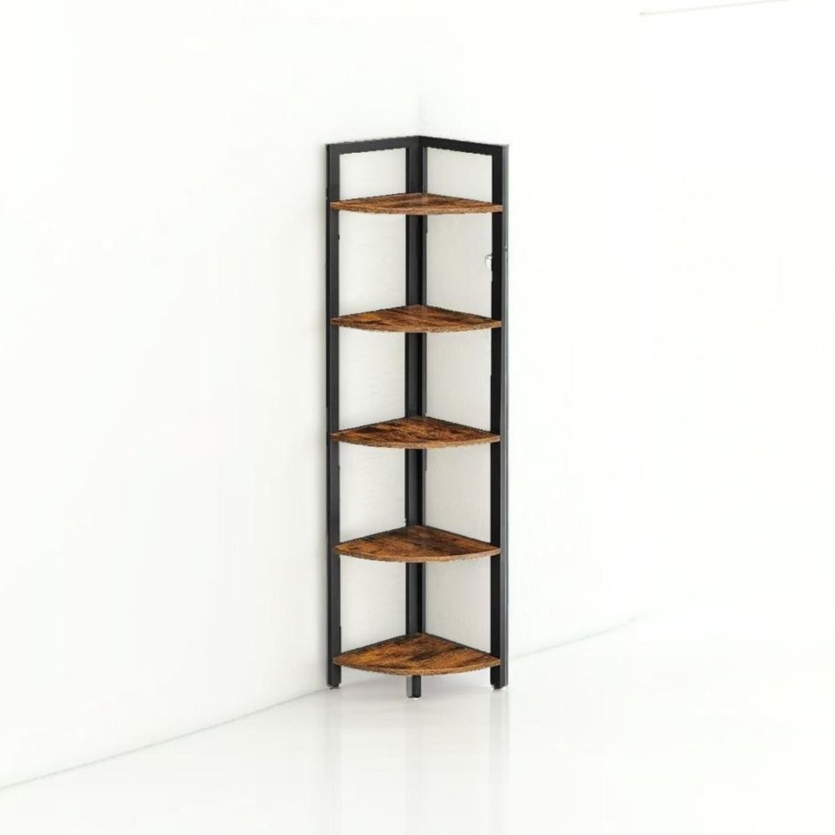 NOVIREX Corner Shelf 5-Tier Freestanding Display Unit - Rustic Brown
