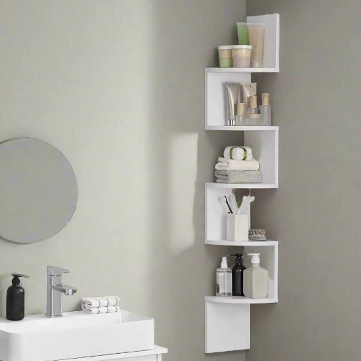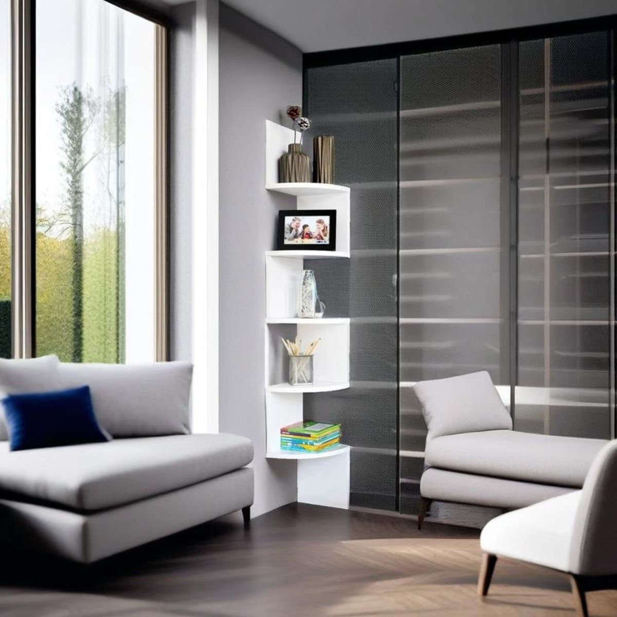NOVIREX Wall Shelf 5-Tier Corner Unit for Bedroom and Living Room - White