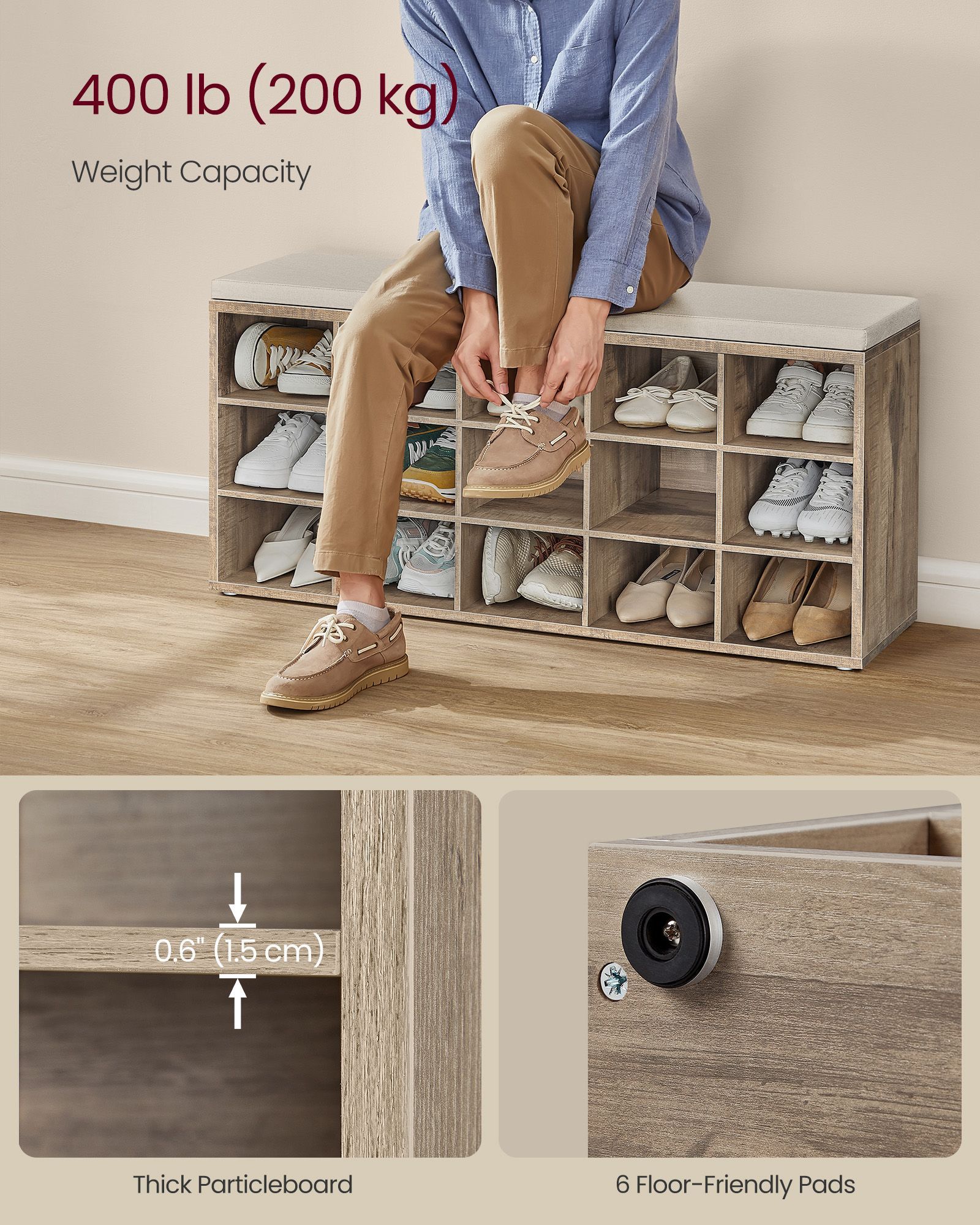 NOVRIA Shoe Bench - 15 Compartment Pedded Seat Medium Sized Bench - Cappuccino Beige