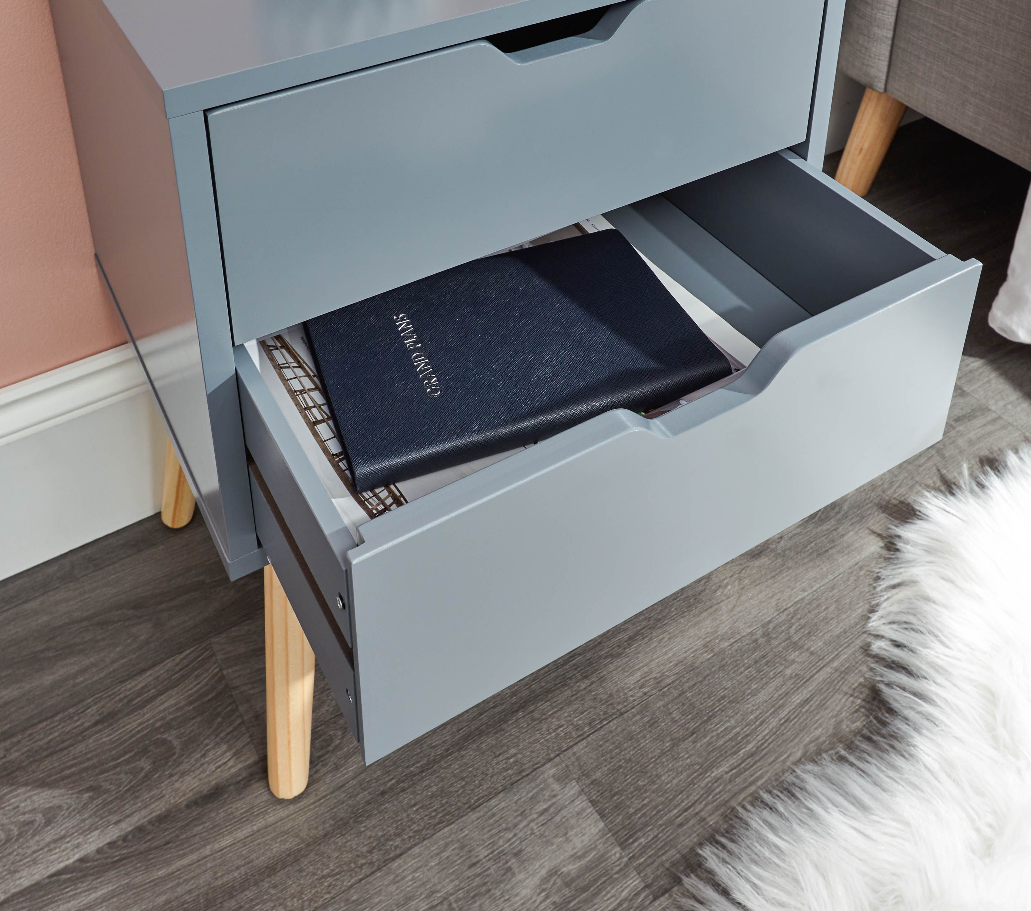 Bedside Table - NYBORG 2 Piece 2 Drawer Nightstand Dark Grey 40cm