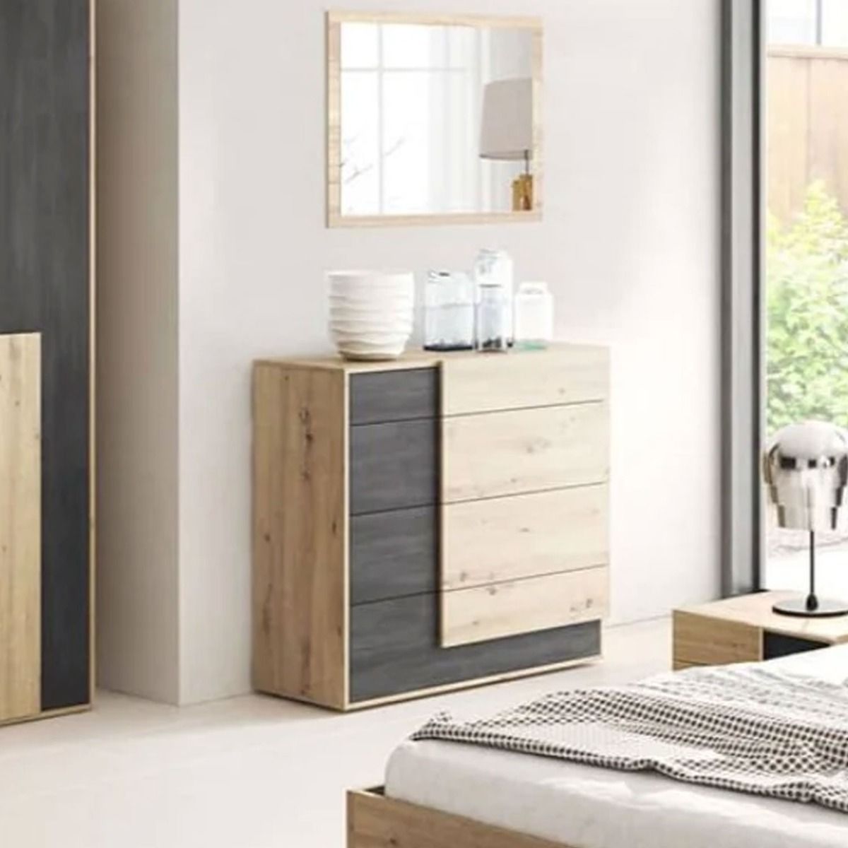 BOISE Oak Finish Chest of Drawers - Medium-sized, 4 Drawers