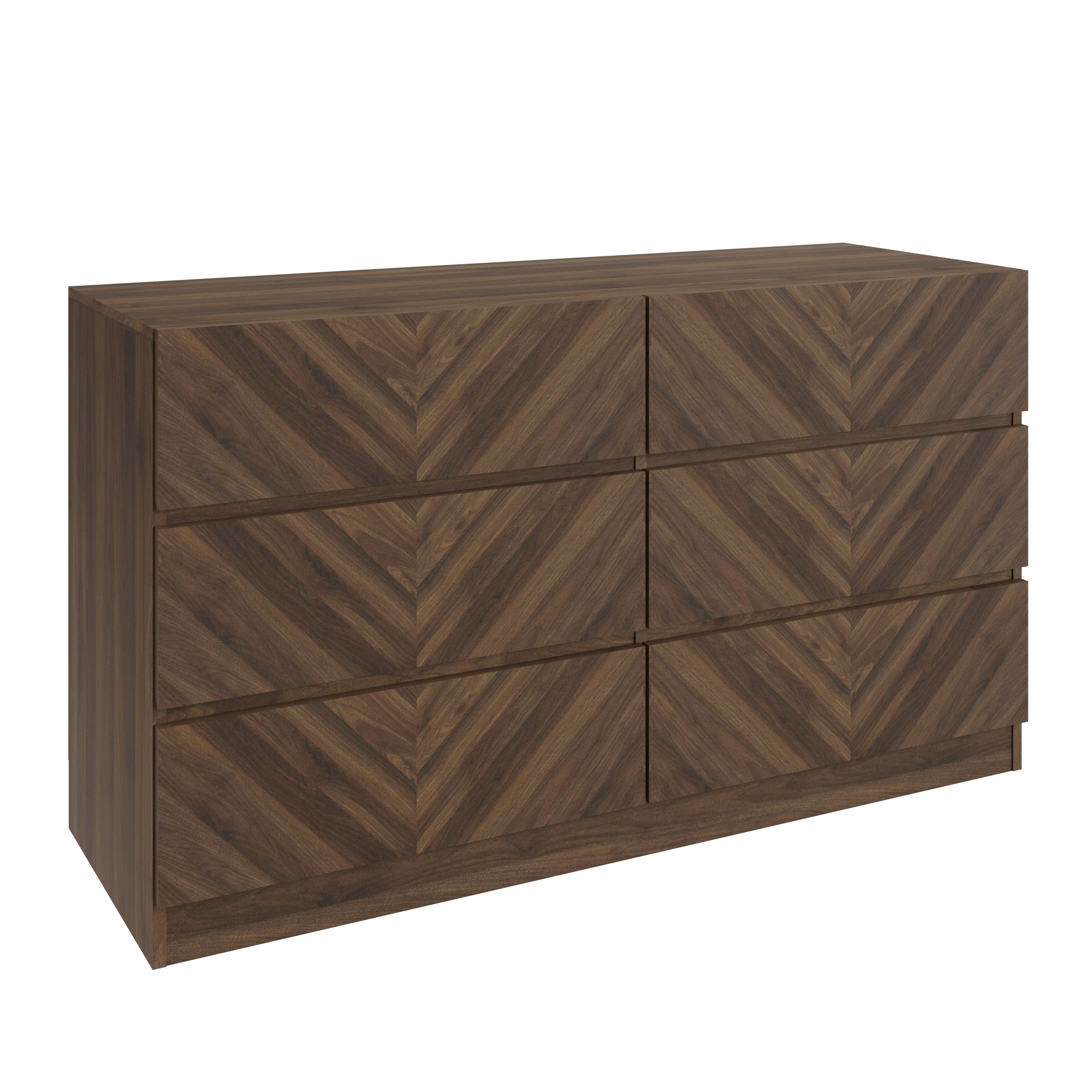 CHARLESTON Oak Finish Chest of Drawers - Large-sized, 6 Drawers, Double