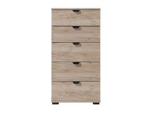 HIGHAM Oak Finish Chest of Drawers - Tallboy, Medium-sized, 5 Drawers
