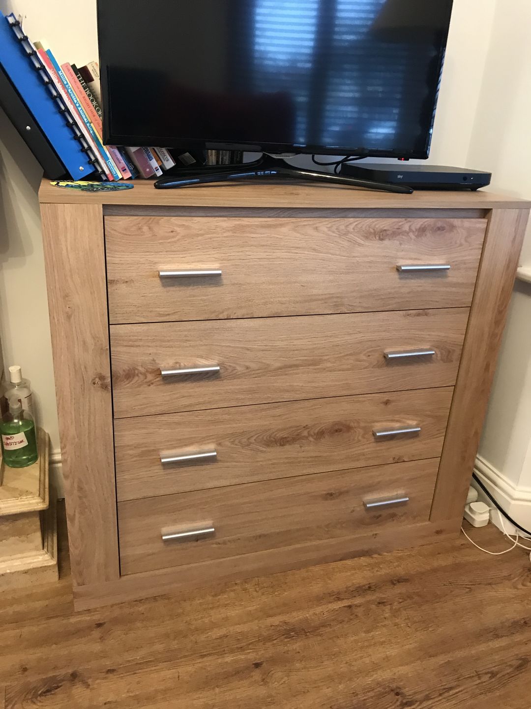 INNISFAIL III Oak Finish Chest of Drawers - Medium-sized, 4 Drawers